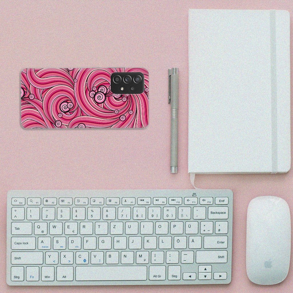 Deze mooie Samsung Galaxy A52 (5G/4G) Hoesje maken met Swirl Pink is een geweldige en duurzame bescherming voor jouw smartphone. De kleuren zijn zeer subtiel op het hoesje gezet en worden op de bovenkant van de case bedrukt. Dit drukwerk doen we in eigen beheer, zodat het roze en het zwart ook uitstekend tot zijn recht komen op de tpu case. Een tpu hoesje is perfect op maat gemaakt en heeft een mooie uitstraling. Daarnaast is de case zeer flexibel en het materiaal is onbreekbaar. De case heeft opstaande randen ter bescherming van het scherm. De randen van het tpu hoesje worden niet in roze met zwart bedrukt. Nergens tref je een hoesje met deze kleuren aan dat zo goed past bij jouw smartphone.