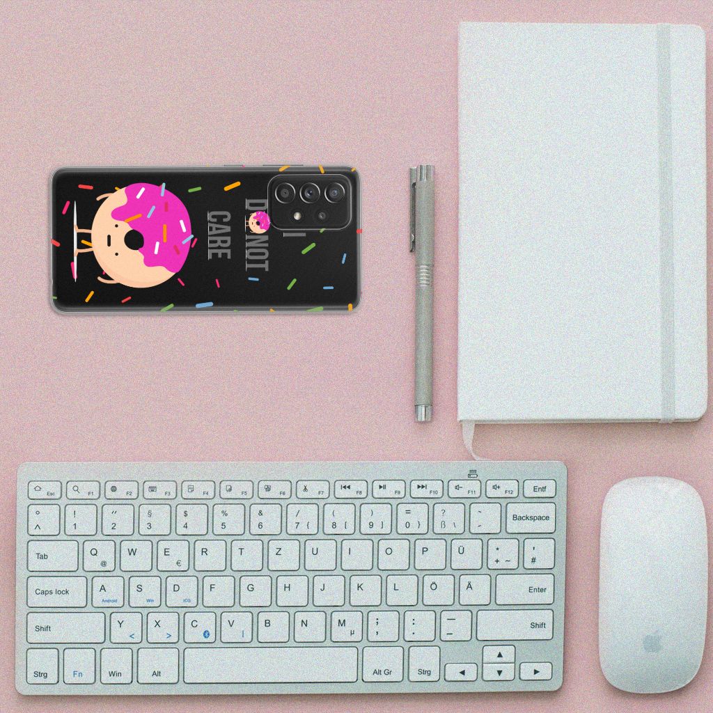 De cartoon met Donut op dit design hoesje geeft jouw smartphone een grappige en vrolijke uitstraling. De Samsung Galaxy A52 (5G/4G) Siliconen Case zorgt ervoor dat je je schouders op zult halen als je telefoon een keer op de grond valt. Omdat er geen schade zal optreden kun jij je weg weer heel makkelijk vervolgen. De grappige Donut Care tpu case is nergens anders te krijgen. Het design is namelijk van de hand van onze eigen ontwerper. Daarnaast zal de case jouw smartphone goed beschermen. Een Donut Care tpu case is een zeer flexibel hoesje. Dit komt onder andere door het elastische en onbreekbare materiaal. Verder is de case zeer praktisch. Wat denk je bijvoorbeeld van de opstaande randen aan de voorkant. Verder beschikt de case ook nog eens over alle noodzakelijke uitsparingen. Ook kun je zelf je eigen unieke hoesje ontwerpen, met eigen cartoons, foto’s en teksten. Een Donut Care tpu case wordt alleen aan de bovenkant bedrukt. De randen blijven volledig doorzichtig.