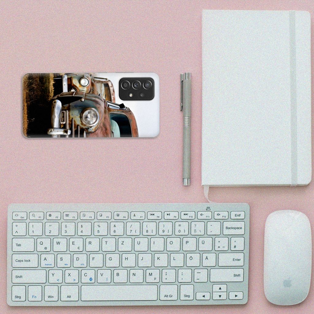 Autoliefhebbers met een voorkeur voor vintage zullen in hun nopjes zijn met dit design hoesje. We hebben een boekhoesje met print van Vintage Auto speciaal op maat gemaakt voor jouw smartphone. Door de achtergrond van dit hoesje krijgt de case met vintage auto’s echt een mooie retro look. Een Samsung Galaxy A52 (5G/4G) Siliconen Hoesje met foto is een zeer flexibel hoesje. Dit komt onder andere door het elastische en onbreekbare materiaal waarvan de hoes is gemaakt. Verder is de case zeer praktisch. Wat denk je bijvoorbeeld van de opstaande randen aan de voorkant. Verder beschikt de case ook nog eens over alle noodzakelijke uitsparingen. Een TPU case wordt alleen aan de bovenkant bedrukt. De randen blijven volledig doorzichtig.