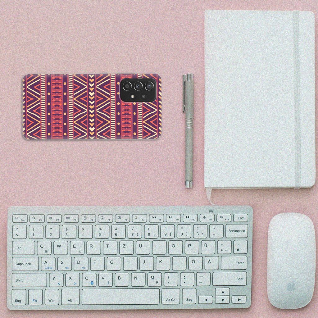 De Azteken leefden tussen 1200 en 1521 in het huidige Mexico. De mooie Aztec-patronen waar zij bekend om stonden, zien we nu nog op kleding, stoffen en tassen. Wie had toen kunnen bedenken dat we diezelfde prints honderden jaren later zelfs op een telefoonhoesje zouden vinden? Dit kleurrijke Aztec Purple-hoesje is perfect voor iedereen die een stukje geschiedenis bij zich wil dragen maar ook gewoon een mooi patroon op zijn hoesje wil. Dit vrolijke, kleurrijke ontwerp staat op een TPU bumper voor de Samsung Galaxy A52 (5G/4G). TPU is flexibel en onbreekbaar. Zo is je telefoon aan de achterkant en de randen heel goed beschermd. De case is aan de bovenkant bedrukt, de randen blijven transparant.