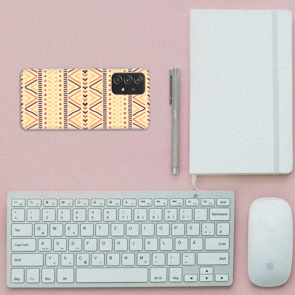 De Azteken leefden tussen 1200 en 1521 in het huidige Mexico. De mooie Aztec-patronen waar zij bekend om stonden, zien we nu nog op kleding, stoffen en tassen. Wie had toen kunnen bedenken dat we diezelfde prints honderden jaren later zelfs op een telefoonhoesje zouden vinden? Dit kleurrijke Aztec Yellow-hoesje is perfect voor iedereen die een stukje geschiedenis bij zich wil dragen maar ook gewoon een mooi patroon op zijn hoesje wil. Dit vrolijke, kleurrijke ontwerp staat op een TPU bumper voor de Samsung Galaxy A52 (5G/4G). TPU is flexibel en onbreekbaar. Zo is je telefoon aan de achterkant en de randen heel goed beschermd. De case is aan de bovenkant bedrukt, de randen blijven transparant.