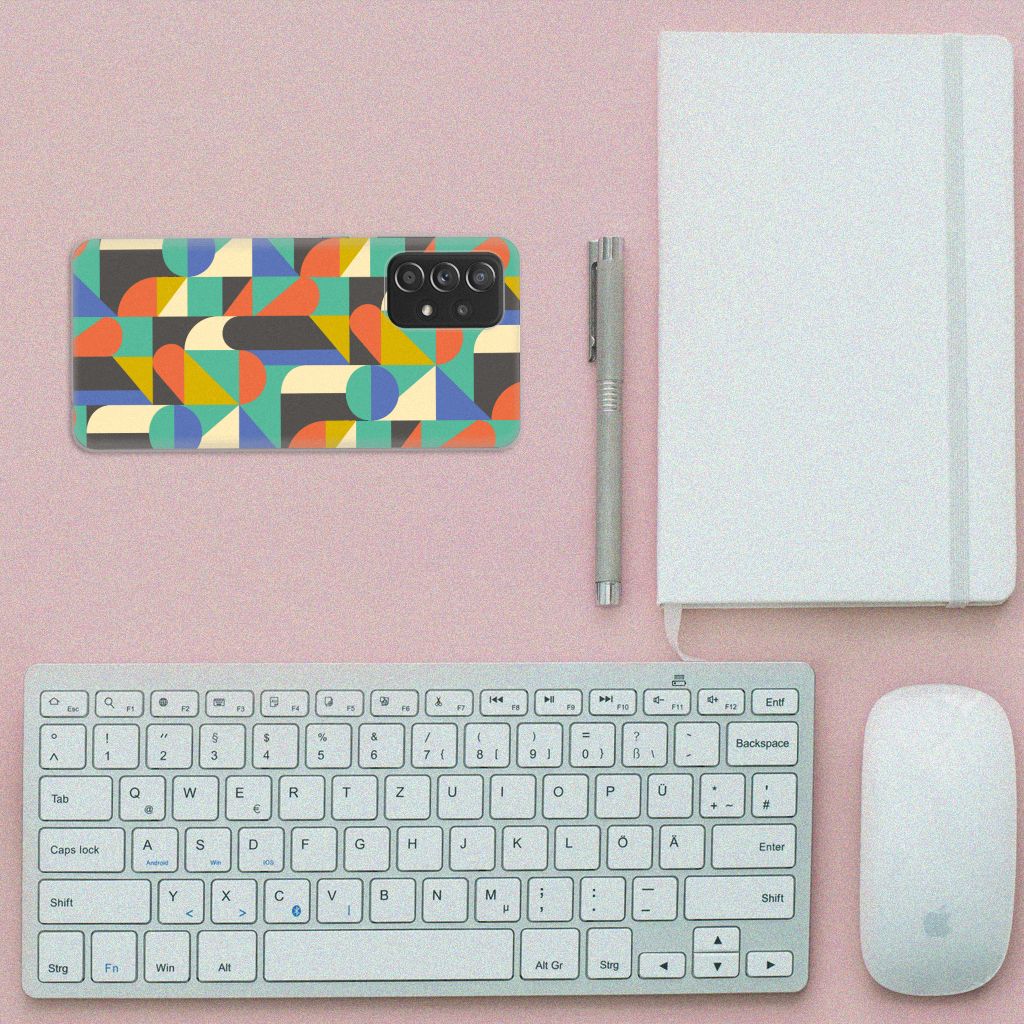 Voor de mensen die een beetje artistiek zijn, is er dit design hoesje met kleuren in een soort van Funky Retro stijl. Je krijgt er bijna een beetje een nostalgisch gevoel bij. De opdruk op dit design hoesje gaat nooit verloren en gaat dus net zo lang mee als dit gave patroon. De print wordt in ons eigen magazijn bedrukt, met zeer duurzame inkt. De case heeft voldoende uitsparingen, dus als je jouw Samsung Galaxy A52 (5G/4G) hebt beloond met dit hoesje ga je een beetje terug in de tijd. Je hoeft het de telefoon nooit uit dit artistieke design hoesje te halen. Het unieke design, door B2C Telecom ontworpen, staat op een TPU bumper. Dit hoesje wordt alleen aan de bovenkant bedrukt en is zeer flexibel. De randen van het hoesje blijven transparant en worden niet bedrukt. Met dit hoesje past jouw telefoon altijd in je broekzak.