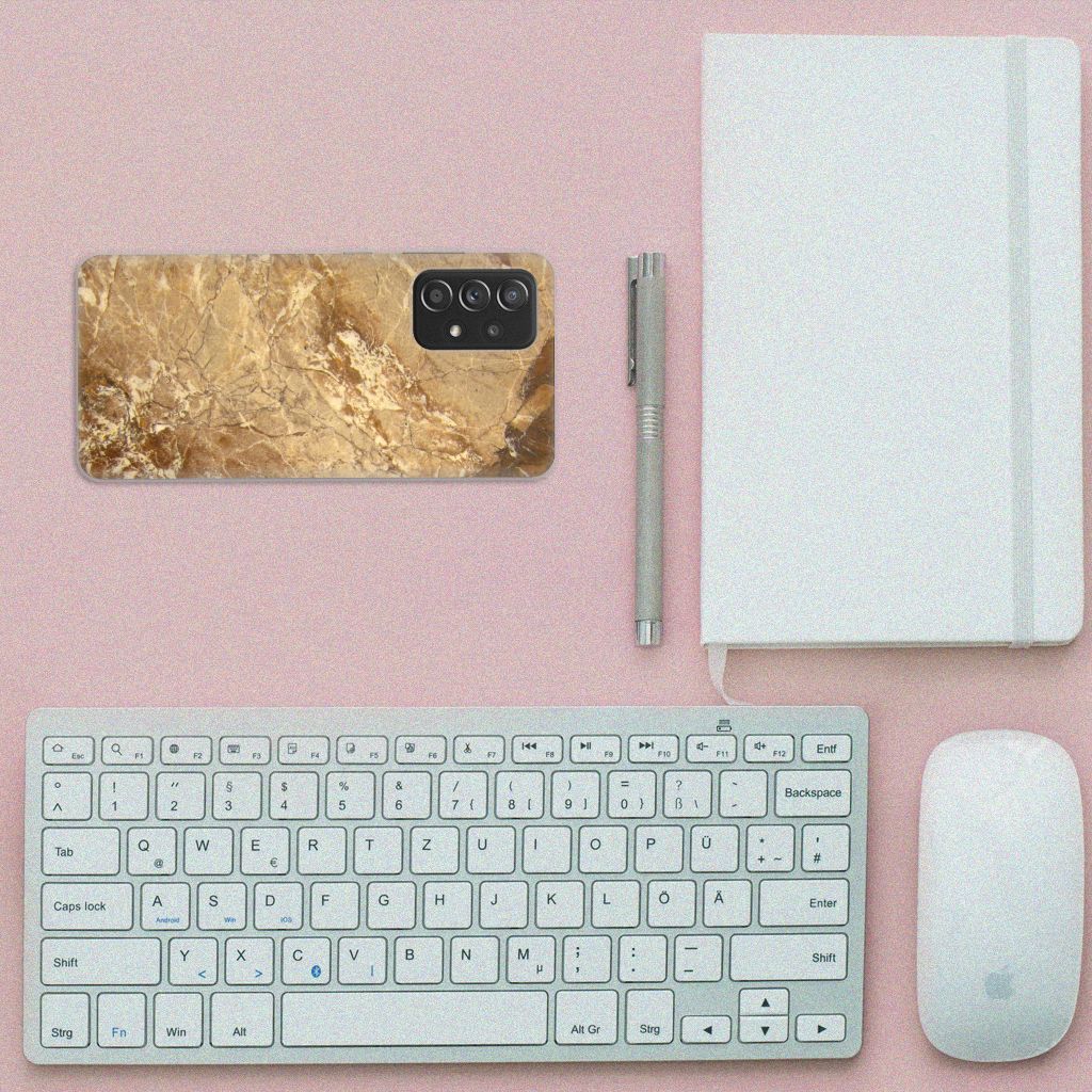 Dit design hoesje met Marmer in lichtbruine kleur is voor de artistiekelingen onder ons. De Grieken en Romeinen wisten het marmer al te waarderen door het in de bouw toe te passen. Naast het witte marmer zijn de diverse soorten marmer in een gevarieerde kleurensamenstelling te krijgen. We hebben verschillende mooie kleuren op design hoesjes gezet, zoals in dit geval het lichtbruine marmer. Dit is een Samsung Galaxy A52 (5G/4G) TPU Siliconen Hoesje met marmer in lichtbruine kleur. Het marmer wordt bedrukt op de voorkant van een tpu case, die beschikt over opstaande randen aan de voorkant en heel goed combineert met een screenprotector van glas of van folie. Door de rijkdom aan kleuren en varianties in afwerking kunnen ontwerpers met marmer schitterende architectonische projecten realiseren. Wij hebben hetzelfde gedaan en onze ontwerper veel vrijheid geboden. Het resultaat zie je terug in deze tpu case met lichtbruin marmer, die jouw smartphone goed beschermt. De zijkanten van de case worden niet bedrukt met het lichtbruine marmer.