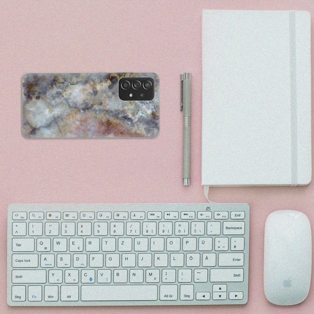 Deze Samsung Galaxy A52 (5G/4G) TPU Siliconen Hoesje met Deze Samsung Galaxy A52 (5G/4G) TPU Siliconen Hoesje met marmer grijs is geen doorsnee product, maar onderscheidend in alle opzichten. Marmer is een zeer gewaardeerd bouwmateriaal, dit gaat zelfs terug tot de Romeinen, waardoor dit ook een symbolische waarde heeft op dit hoesje. Het tpu hoesje in een grijze kleur beschikt over alle uitsparingen die je nodig hebt en is gemaakt van zeer flexibel en schokabsorberend materiaal. De case wordt aan de achterzijde bedrukt met grijze marmer. Marmer doet het goed op onze telefoonhoesjes. We hebben deze in zeer veel verschillende kleuren in ons assortiment zitten. Je kunt het hoesje met grijze marmer ook gebruiken als basis voor je eigen ontwerp. Behalve het grijs kun je dan nog vele andere kleuren toevoegen. Om nog maar te zwijgen over die mooie foto’s en teksten van jezelf.
