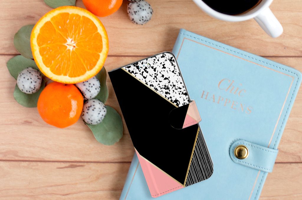Samsung Galaxy A52 Bookcase met ruimte voor 3 pasjes Zwart Roze Vormen