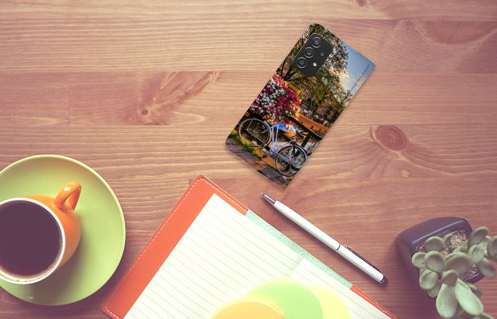 Amsterdam is meer dan ooit een toeristische trekpleister. Een bezoek aan de hoofdstad is niet compleet als er geen bezoek is gebracht aan de Amsterdamse Grachten. Ze zijn een symbool van de stad en hebben een enorme culturele en historische waarde. Daarom kunnen ze natuurlijk niet ontbreken in onze collectie design hoesjes. Dit schitterende design hoesje met Amsterdamse grachten tref je enkel en alleen aan bij B2C Telecom. De ondergaande zon en de fleurige en fraaie bloempakketten zorgen voor een prachtig totaalplaatje. Amsterdam is wereldberoemd om haar prachtige grachten uit de zeventiende eeuw. Dit smartphone hoesje is hier een eerbetoon aan. Het design staat op een stand case. Deze Samsung Galaxy A52 Book Cover beschermt jouw telefoon aan alle kanten en beschikt over een 1 opbergvakje en een speciale standaard. Het hoesje wordt afgesloten met een magneet aan de binnenzijde. De houder aan de binnenzijde is van TPU. Alle zijden van de stand case worden bedrukt.