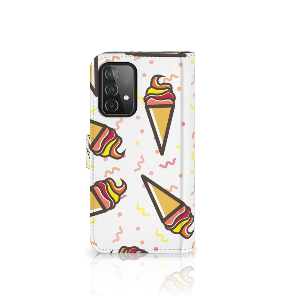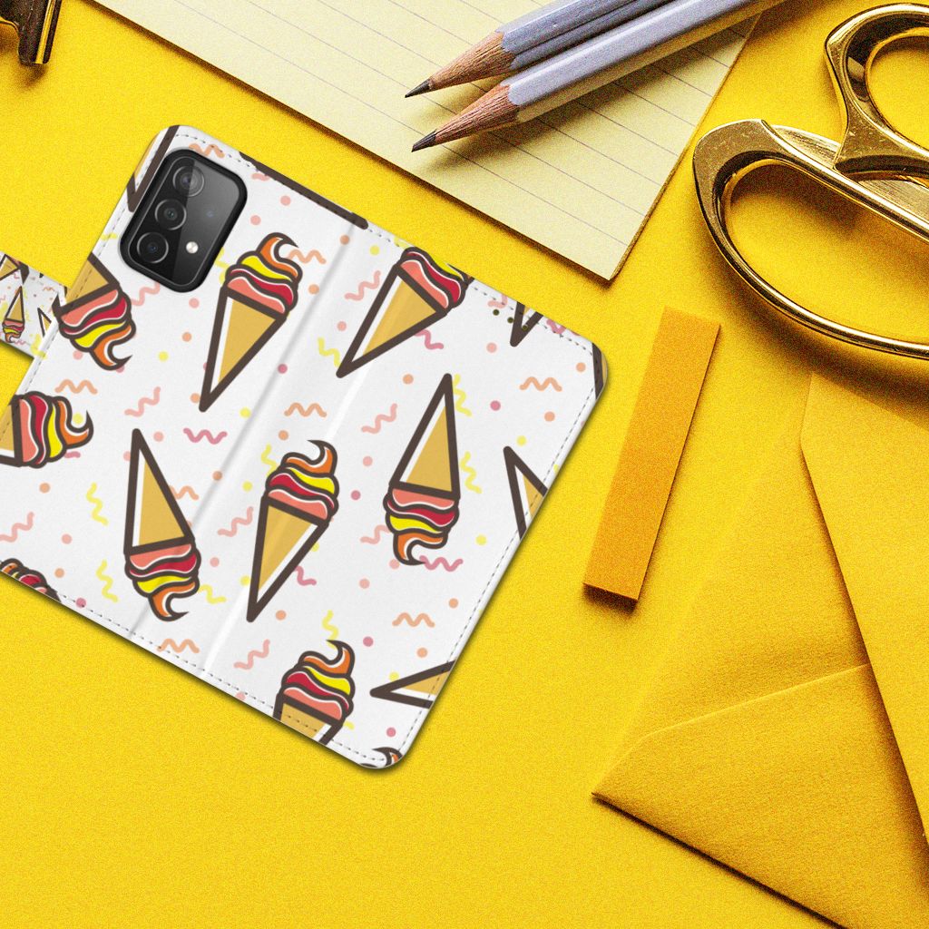 Een vrolijk Samsung Galaxy A52 Book Cover met daarop verschillende ijsjes. Als je daar geen zomers gevoel meer van krijgt, weten wij het ook niet meer. De zomer en ijsjes zijn onlosmakelijk met elkaar verbonden. Tijdens een bezoekje aan het strand mag een lekker ijsje bijvoorbeeld niet ontbreken. Een design hoesje met lekkere Icecream print past daar natuurlijk ook ontzettend goed bij. Jouw telefoon is helemaal beschermd met een boekhoesje met ijsjes design. De aankoop van deze case is een heerlijke investering, die zich gegarandeerd terugbetaalt. Alle zijden van dit hoesje worden bedrukt met ijsjes. De case heeft een lipje aan de buitenzijde voor het afsluiten van de telefoon en de houder aan de binnenzijde is van TPU. Onder alle weersomstandigheden zal deze case met verschillende opbergvakjes perfect functioneren, ook in de zomer met een ijsje in je hand. Dit smaakvolle hoesje is zeer goedkoop te bestellen en wordt zeer snel bezorgd.