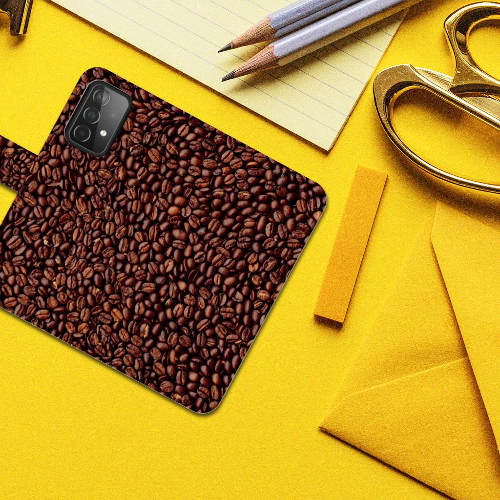 Als je de lekkerste koffie wilt dan kun je het beste koffiebonen kopen. Koffie is namelijk het verst wanneer je de bonen zelf maalt. En wie houdt nou niet van de geur van vers gemaalde koffie? Daarom hebben wij de mooiste Koffiebonen op een smartphone hoesje gezet. Ben je barista, dan is dit het perfecte hoesje voor jouw werktelefoon. De koffiebonen staan op een boekhoesje. Er is vrijwel geen betere bescherming dan dit hoesje, dat ook nog eens opbergvakjes heeft en zeer praktisch is. Je kunt je beurs thuislaten met een Samsung Galaxy A52 Book Cover. Alle zijden van dit hoesje zijn bedrukt, evenals het lipje aan de buitenzijde. Mensen die houden van een stevige espresso, kiezen voor dit degelijke design hoesje met bonen. Er staan ook bonen op het lipje en je kunt zelf een eigen tekst toevoegen.