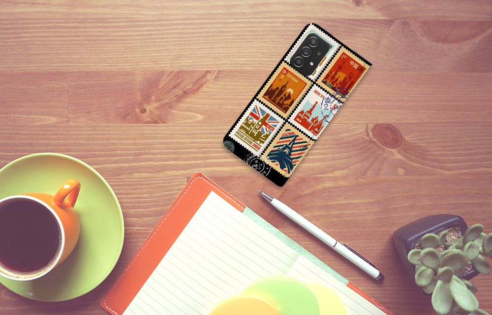 Voor de postzegelverzamelaars onder ons is dit hoesje met Postzegels uit verschillende landen een zegen. Maar ook andere smartphone gebruikers zullen enthousiast raken bij het zien van deze fraaie stand case met zegels uit verschillende landen. Op een Samsung Galaxy A52 Book Cover kun je er nogal wat kwijt, omdat alle zijden van de case kunnen worden bedrukt. Zelfs de standaard aan de buitenzijde is voorzien van een postzegel print. Aan de binnenzijde tref je een vakje aan voor een pasje of briefgeld en een houder van TPU. Deze klemt precies om je smartphone, zodat die veilig is opgeborgen. Mis je nog een bepaalde postzegel op deze case? Dan kun je natuurlijk ook zelf een hoesje ontwerpen met postzegels. Je bepaalt dan helemaal zelf hoe de stand case eruit komt te zien.