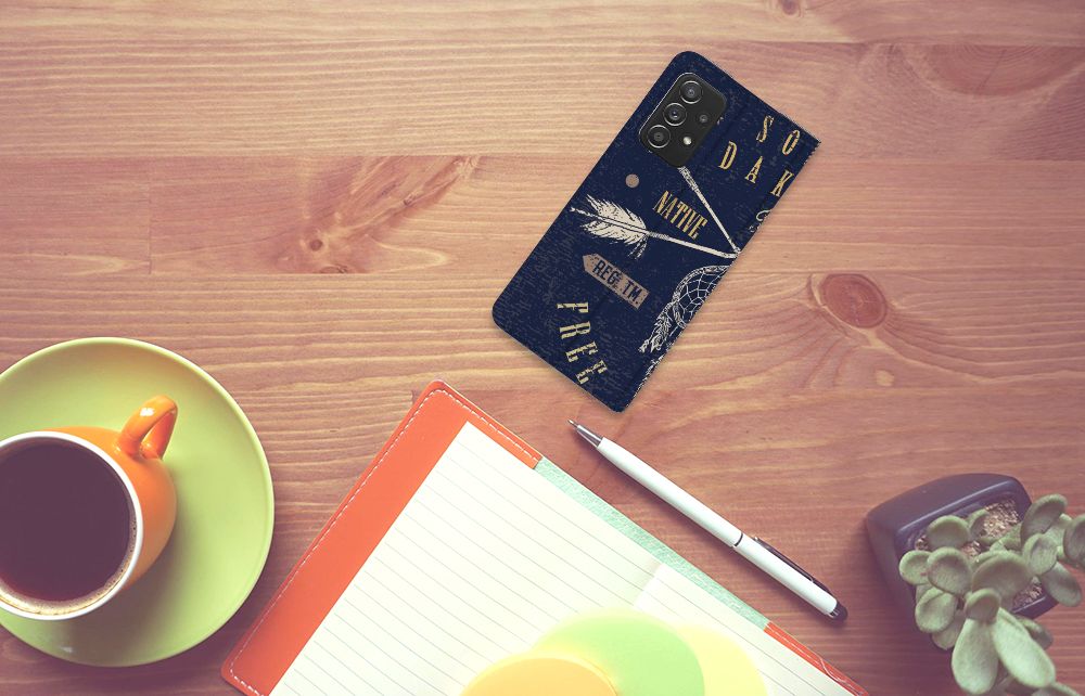 Het gebied dat nu South Dakota heet werd oorspronkelijk bevolkt door Indianenstammen, vandaar dat dit design hoesje er wellicht zo stoer uitziet. Het is ook nog eens zeer stevig. Stand cases bieden de allerbeste bescherming voor jouw smartphone, dit komt omdat ze jouw apparaat compleet afsluiten van invloeden van buitenaf. Alle zijden van een Samsung Galaxy A52 Book Cover worden bedrukt, pas nadat jij je bestelling hebt geplaatst. In het westen van South Dakota bevinden zich de Black Hills, hier is het wereldberoemde Mount Rushmore-monument te vinden. Wellicht dat dit ook nog eens op onze hoesjes komt te staan, voor nu moet je het doen met deze South Dakota print. De stand case heet niet voor niet zo. Het is een case met een standaard, voorzien van magnetische sluiting en een opbergvakje. Gecombineerd met de TPU houder aan de binnenkant, zorgt dit voor een perfecte bescherming van jouw telefoon.