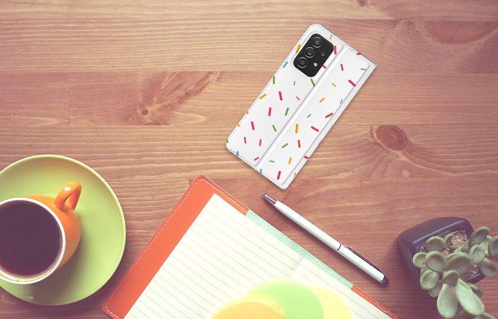 De cartoon met Donut op dit design hoesje geeft jouw smartphone een grappige en vrolijke uitstraling. De Samsung Galaxy A52 Flip Style Cover zorgt ervoor dat je je schouders op zult halen als je telefoon een keer op de grond valt. Omdat er geen schade zal optreden kun jij je weg weer heel makkelijk vervolgen. De grappige Donut Care stand case is een zeer populair product. Allereerst is het nergens anders te krijgen. Het design is namelijk van de hand van onze eigen ontwerper. Daarnaast zal de case jouw smartphone aan alle zijden beschermen. Ook heeft het Donut Care hoesje een vakje aan de binnenzijde en een speciale standaard. Ook kun je je eigen unieke hoesje ontwerpen, met eigen cartoons, foto’s en teksten. De houder aan de binnenzijde van de Donut Care case is van TPU, de buitenzijde van PU leer.