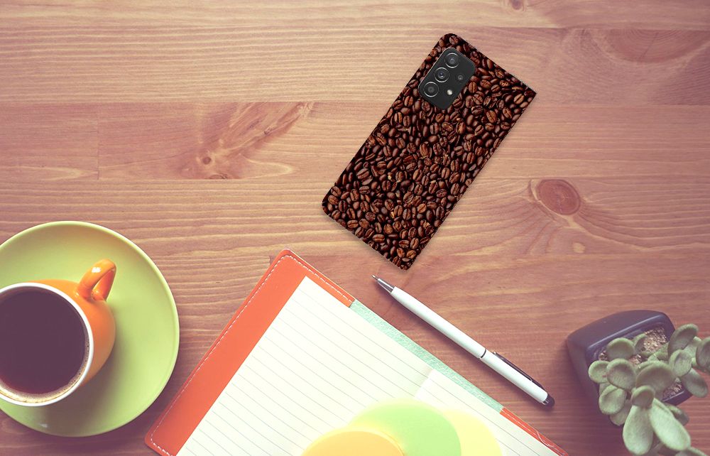 Als je de lekkerste koffie wilt dan kun je beste koffiebonen kopen. Koffie is namelijk het verst wanneer je de bonen zelf maalt. En wie houdt nou niet van de geur van vers gemaalde koffie? Daarom hebben wij de mooiste Koffiebonen op een smartphone hoesje gezet. Ben je barista, dan is dit het perfecte hoesje voor jouw werktelefoon. De koffiebonen staan op een stand case. Er is vrijwel geen betere bescherming dan dit hoesje, dat ook nog eens 1 opbergvakje heeft en een standaard. Je kunt leuk filmpjes kijken met een Samsung Galaxy A52 Flip Style Cover. Alle zijden van dit hoesje zijn bedrukt. Mensen die houden van een stevige espresso, kiezen voor dit degelijke design hoesje met bonen. Je kunt zelfs een eigen tekst toevoegen aan het design.