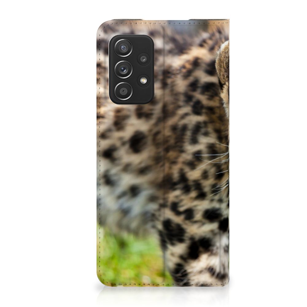 De luipaard is een grote, gespierde katachtige met korte, krachtige poten en een lange staart. Aangezien het op dit hoesje een baby luipaard betreft, zijn deze eigenschappen nog niet volledig tot wasdom gekomen. De kop van de luipaard is breed en een beetje rond van vorm met kleine, ronde oren. De snuit is middelgroot, met krachtige kaken en lange snorharen. De vacht van een luipaard is bedekt met veel zwarte vlekken. Kies je voor dit design hoesje, dan zal er van vlekken op jouw smartphone nooit en te nimmer sprake zijn. Het stoere en tegelijkertijd aandoenlijke design staat op een stand case. Een Samsung Galaxy A52 Hoesje maken beschermt jouw telefoon aan alle kanten en beschikt over een 1 opbergvakje en een speciale standaard. Het hoesje wordt afgesloten met een magneet aan de binnenzijde. De houder aan de binnenzijde is van TPU.