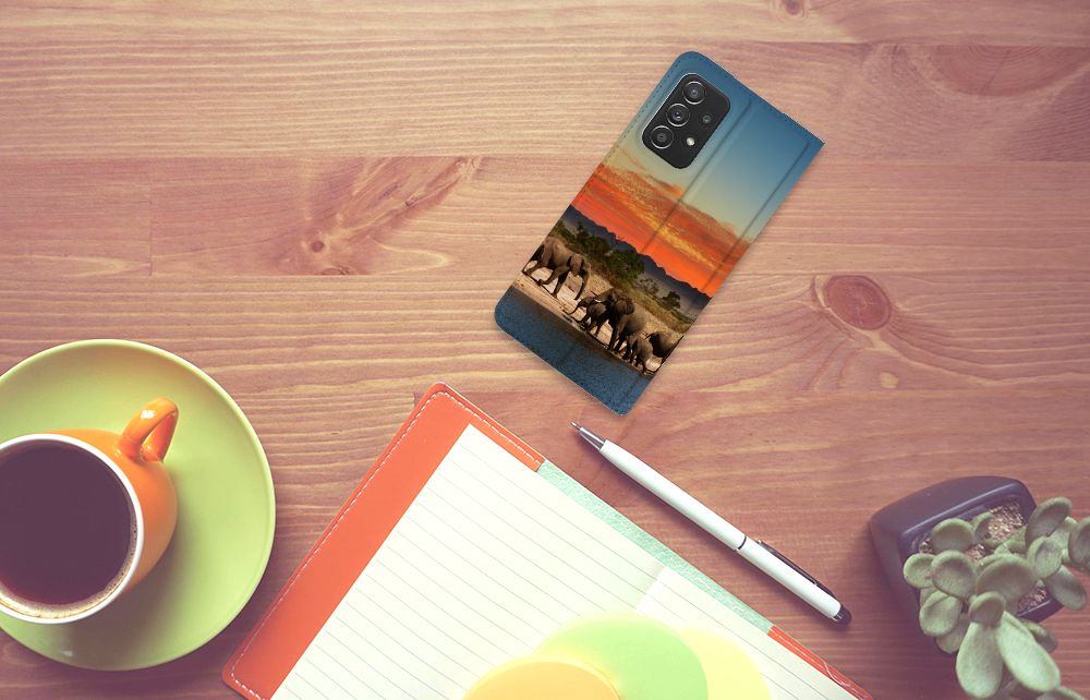 Dit hoesje is zo sterk als een olifant. Dat is goed nieuws, want jouw telefoon heeft een zeer goede bescherming nodig. Dat krijg je met dit design hoesje met print van Olifanten. De Afrikaanse olifant, het allergrootste landdier ter wereld, heeft waarschijnlijk het meest te lijden gehad van stroperij om het ivoor. Deze dieren verdienen dus een goede bescherming, net als jouw smartphone. Met een Samsung Galaxy A52 Hoesje maken met olifant erop krijg je dit zeker voor elkaar. De stand case beschermt alle zijden van je telefoon en heeft aan de binnenzijde een vakje waarin je een pasje kunt opbergen. De sterke olifant komt zeer goed tot zijn recht op deze case, die aan de binnenkant een houder heeft van tpu. Ook de magneet aan de binnenkant is zeer handig. Alle zijden van de case worden bedrukt met olifanten.