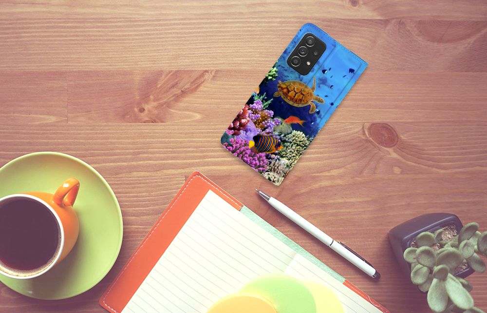 Dit kleurrijke hoesje met tropische Vissen is een ware eyecatcher. Als je aan het duiken bent en je treft een school aan met dit soort opvallende vissen, dan heb je een geweldige ervaring. Maar je hoeft er eigenlijk niet per se het water voor in te duiken. Want wij hebben een schitterende verzameling vissen op dit design hoesje gezet. Met onze zeer geavanceerde printer zetten we de afbeelding van vissen op alle zijden van de Samsung Galaxy A52 Hoesje maken. De case heeft aan de binnenkant een vakje waarin je jouw creditcard of ander pasje kwijt kunt. Ga je een dagje vissen, dan hoef je de portemonnee dus ook niet op zak te hebben. Verder is je telefoon natuurlijk maximaal beschermd met deze stand case met print van tropische vissen. De houder aan de binnenzijde van het design hoesje met vissen print is van TPU.