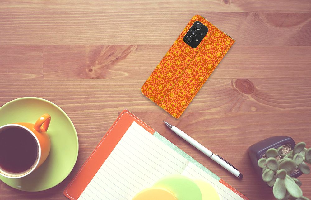 Batikken is een super oude kunstvorm. Met deze methode wordt een geweven stof met verf gedecoreerd. Er zijn stoffen gevonden in het Midden-Oosten en Azië van meer dan tweeduizend jaar oud. Wie had kunnen bedenken dat we zo’n mooie batik-print duizenden jaren later zelfs op telefoonhoesjes zouden terugvinden? Dit Hoesje met Magneet in voor je Samsung Galaxy A52 heeft een mooie oranje kleur en een prachtig symmetrisch patroon. Vanwege de felle kleurtjes is dit hoesje onwijs vrolijk. Het hoesje heeft binnenin één vakje voor een pasje en een magnetische sluiting aan de binnenkant. Verder heeft de batik orange-hoes een houder van TPU. Het leuke van een standcase is dat je hem eenvoudig neer kunt zetten. Zo heb je je handen vrij als je bijvoorbeeld een video wilt kijken op je smartphone.