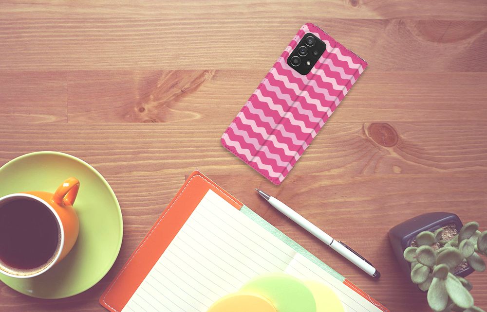 Dit design hoesje met roze golven is speciaal op maat gemaakt voor jouw telefoon. We hebben verschillende kleurstellingen gebruikt in het design, zodat de case er spannend en leuk uitziet. Dit roze hoesje met verschillende soorten golven ziet er opwindend uit. Het Samsung Galaxy A52 Hoesje met Magneet wordt in ons eigen magazijn bedrukt, vandaar dat we de kosten zeer laag kunnen houden. Wij kunnen het duurzame hoesje met Waves Pink zeer snel leveren. Heb jij altijd al een design hoesje met verschillende soorten roze willen hebben? De stand case met roze golven beschermt jouw telefoon aan alle kanten en beschikt over een 1 opbergvakje en een speciale standaard. Het roze hoesje wordt afgesloten met een magneet aan de binnenzijde. De houder aan de binnenzijde van de case in verschillende soorten roze is van het flexibele TPU. Alle zijden van de roze stand case worden bedrukt.