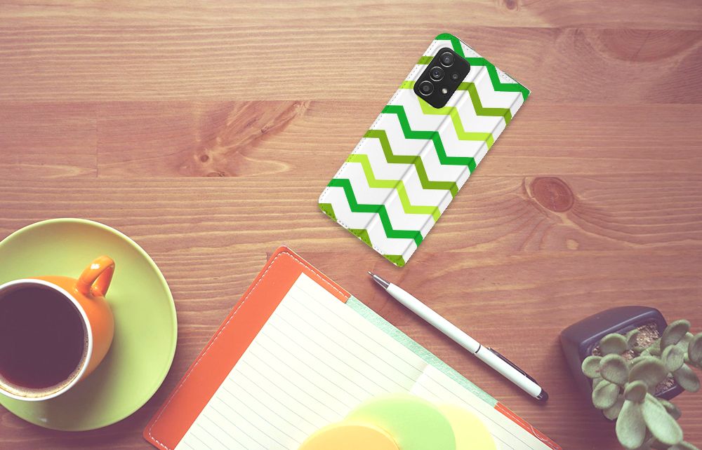 Dit zigzag groen design hoesje is speciaal ontworpen voor jouw telefoon. We hebben bewust verschillende stijlen groen gebruikt, zodat er voldoende sprake is van variatie. Dit groene hoesje ziet er super strak uit. Dat kan ook niet anders, als je weet dat onze designer zijn creativiteit heeft gebruikt. Hij schudt voortdurend nieuwe designs uit zijn mouw en dit zigzag groene hoesje is een van zijn fraaiste creaties. Een heel tof Samsung Galaxy A52 Hoesje met Magneet, al zeggen we het zelf. Valt dit Zigzag Groen design hoesje goed bij jou? Bestel het dan vandaag nog en je hebt het morgen in huis. Het design staat op een stand case. Deze case beschermt jouw telefoon aan alle kanten en beschikt over een 1 opbergvakje en een speciale standaard. Het hoesje wordt afgesloten met een magneet aan de binnenzijde. De houder aan de binnenzijde is van TPU. Alle zijden van de stand case worden bedrukt.