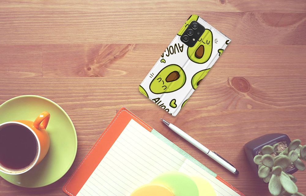 Avocado’s zijn niet alleen heel erg goed voor je, ze zijn ook super leuk op je telefoonhoesje. Dit unieke design vol schattige avocado’s zal jou en iedereen om je heen meteen opvrolijken. Nog een voordeel van dit design: deze avocado’s bederven nooit! Dit leuke Avocado Singing-ontwerp staat op een Magnet Case voor de Samsung Galaxy A52. Dit populaire smartphonehoesje heeft één vakje en is aan alle zijden bedrukt. Met de standcase zet je je telefoon gemakkelijk neer, zodat je je handen vrij hebt als je bijvoorbeeld filmpjes bekijkt. De binnenkant van de standcase is van grijs PU-leer. Dat is ideaal, omdat je daardoor niet snel vlekken ziet op je hoesje.