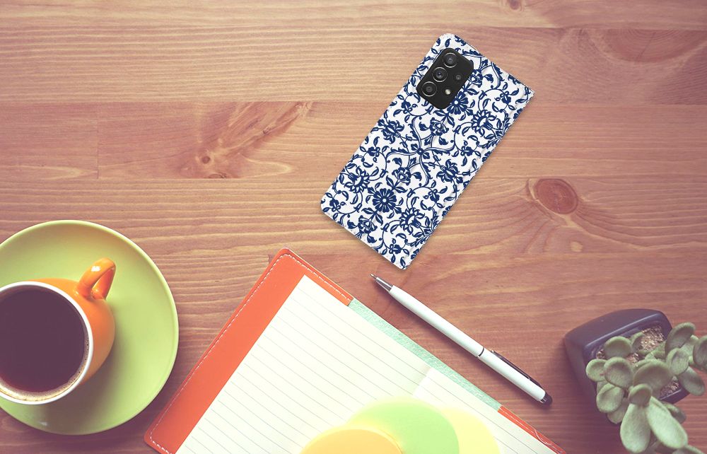 Een plaatje, deze Samsung Galaxy A52 Smart Cover met Flower Blue patroon, die jouw telefoon van een hele mooie uitstraling voorziet. We hebben verschillende soorten patronen in de aanbieding waarmee we jouw hoesje kunnen verrijken, maar dit is wel een van de fraaiste. Maar natuurlijk heeft iedereen zo zijn eigen smaak. Vandaar dat we nog allerlei andere patronen kunnen aanbieden in de leukste kleurencombinaties. Het stand hoesje met blauwwit patroon beschermt jouw telefoon aan alle zijden en beschikt over een opbergvakjes voor pasjes en briefgeld. De case sluit perfect af dankzij de magneet aan de binnenzijde. De houder aan de binnenzijde van TPU is zeer flexibel. Alle zijden van de stand case worden bedrukt met het blauwwitte patroon. Heb je een rijke fantasie? Ontwerp dan je eigen design hoesje met favoriet patroon.