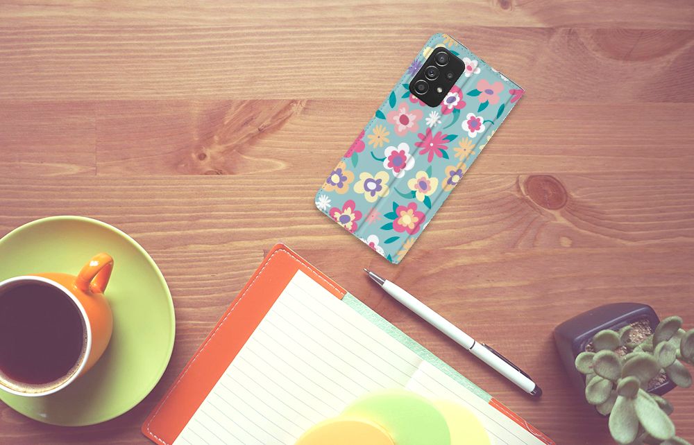 Ben je op zoek naar een uniek telefoonhoesje voor je Samsung Galaxy A52? Dan ben je bij B2C Telecom aan het juiste adres! Speciaal voor jou hebben we dit prachtige Flower Power design in onze collectie hoesjes opgenomen. Het design wordt bedrukt op een Smart Cover en heeft een vakje aan de binnenkant voor een pasje. Het fijne aan dit hoesje is dat je het als standaard neer kunt zetten. Hierdoor geniet je nog meer als je een filmpje aan het kijken bent op je telefoon. Het hoesje wordt afgesloten door magneten aan de binnenkant. Wil je dit design hoesje nog iets extra's geven? Voeg dan gratis je naam of een quote toe! Is dit design hoesje toch niet helemaal wat je zocht? Ontwerp dan zelf een hoesje in ons ontwerpprogramma.