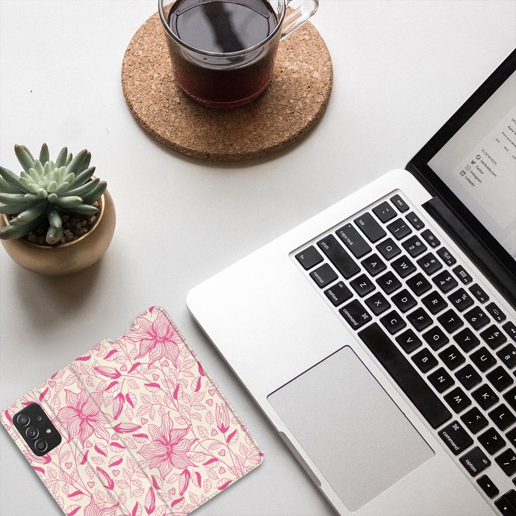 Deze mooie Samsung Galaxy A52 Smart Cover met Pink Flowers is een geweldige en duurzame bescherming voor jouw smartphone. De roze kleuren zijn zeer subtiel op het hoesje gezet en worden op alle zijden van de case bedrukt. Dit printen doen we in eigen beheer, zodat de roze bloemen ook uitstekend tot zijn recht komen op de stand case. Het smartphone hoesje met bloemen is een perfect cadeau voor jouw beste vriendin! Een stand hoesje is perfect op maat gemaakt en heeft een vakje voor een pasje. Daarnaast is de magneet aan de binnenkant zeer veilig. De case sluit perfect af. De houder aan de binnenzijde is van tpu. Ook de standaard aan de buitenzijde wordt bedrukt als jij dat wilt. Nergens tref je een hoesje met roze bloemen aan dat zo goed past bij jouw smartphone.