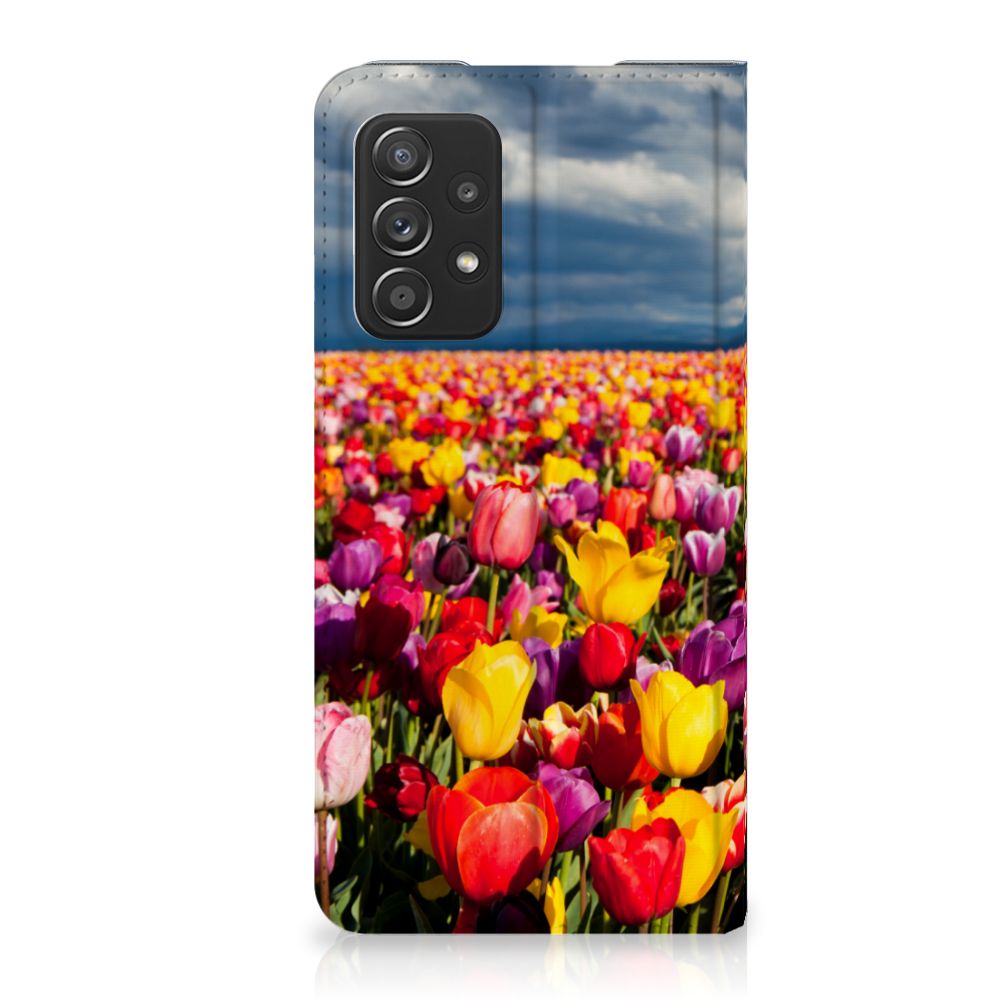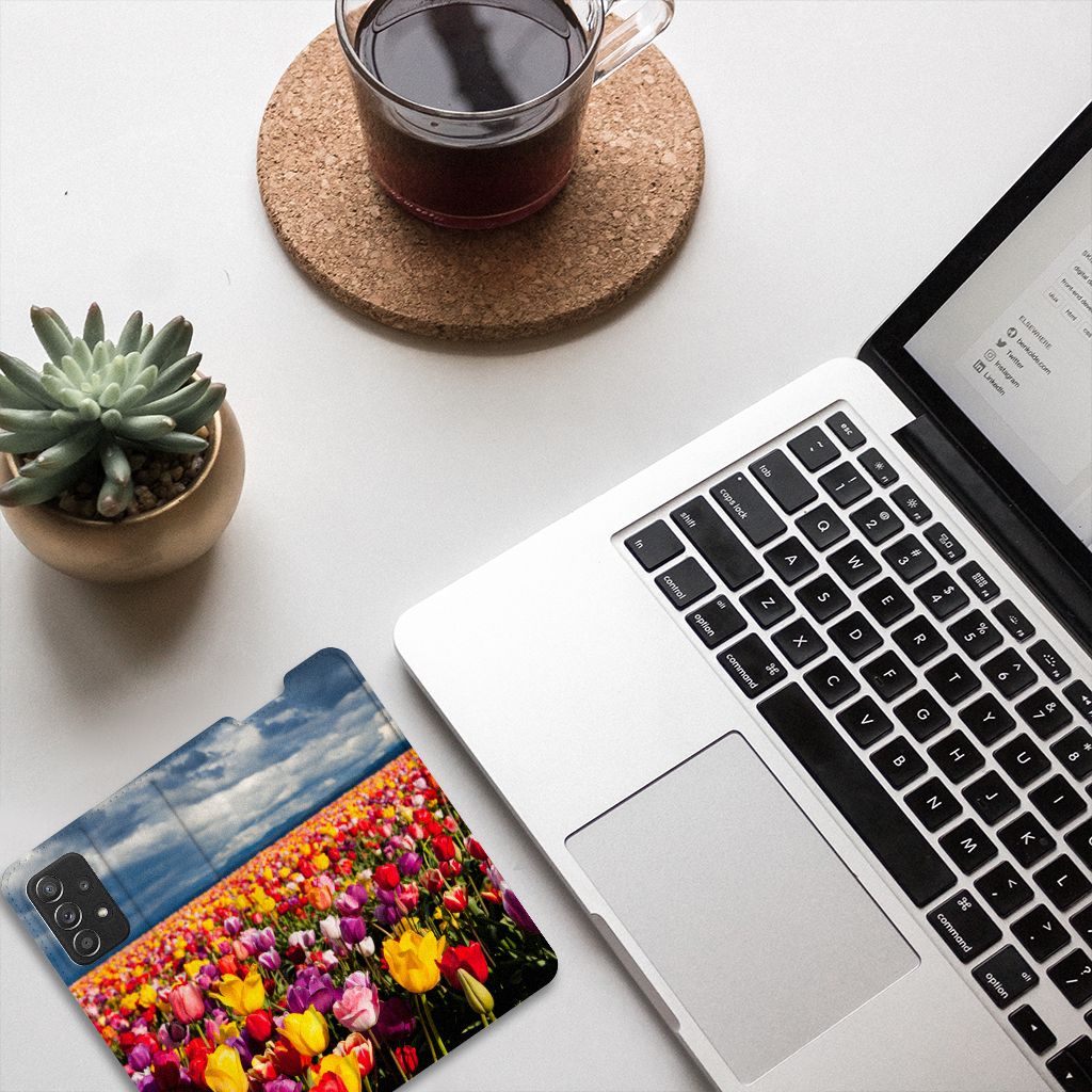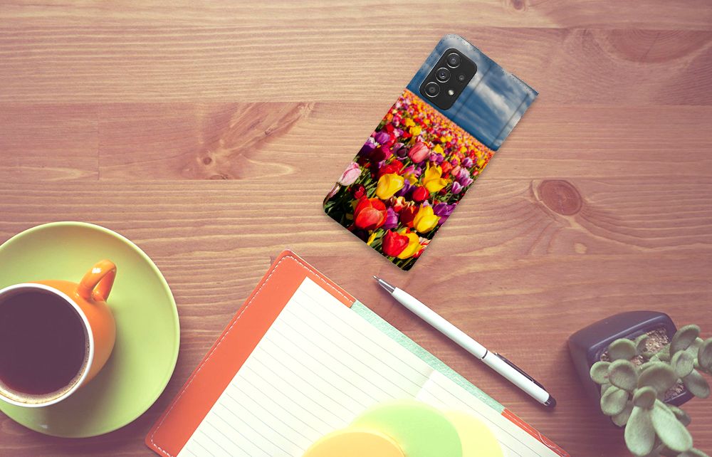 De tulp is een oer-Nederlandse bloem en heeft een lange geschiedenis. Deze Samsung Galaxy A52 Smart Cover met Tulpen ziet er bijzonder kleurrijk uit. Dit fleurige smartphone hoesje geeft een bijzondere bescherming van jouw apparaat. Tulpen zijn ideaal voor een kleurrijk begin van het tuinseizoen. Iedereen wordt er vrolijk van om te zien hoe deze bloemen het voorjaar kleur geven en het begin van de warmere tijd van het jaar aankondigen. Dan kan het toch niet anders of jij wordt heel erg blij van deze stand case met tulpen? Deze populaire stand case heeft ruimte voor een pasje of briefgeld aan de binnenzijde en wordt magnetisch afgesloten. De houder aan de binnenkant is van TPU en de case wordt aan alle zijden bedrukt met tulpen. Je kunt ook zelf een stand case maken met daarop jouw favoriete bloemen.