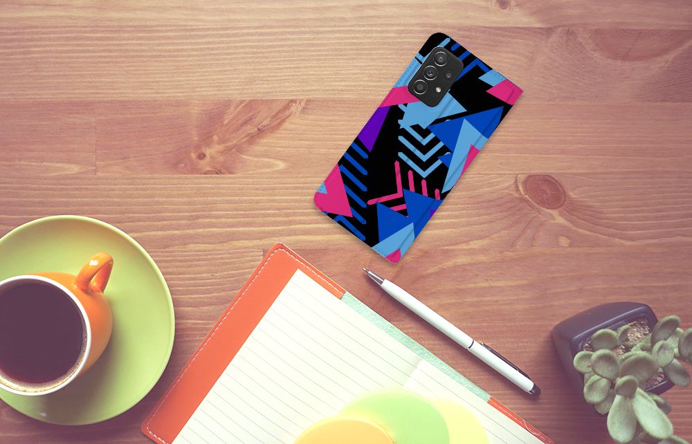Dit fraaie hoesje met het design Funky Triangle is alles behalve eenvoudig en sober. Dat komt goed uit, want je hebt natuurlijk ook geen doorsnee telefoon gekocht. Mocht je dat wel hebben gedaan, dan wordt hij meteen speciaal als je een Samsung Galaxy A52 Stand Case koopt voor een spotprijsje. Een ding is zeker: opvallen ga je beslist met dit hoesje met paarse, roze en blauwe driehoeken. Jij zult in je element zijn met dit design hoesje met paarse, roze en blauwe driehoeken, omdat het er schitterend uitziet en jouw telefoon perfect beschermt. Het smartphonehoesje beschermt jouw telefoon aan alle zijden en beschikt over 1 opbergvakje en een speciale standaard. Het hoesje wordt afgesloten met een magneet aan de binnenzijde. De houder aan de binnenzijde is van TPU. Alle zijden van de stand case worden bedrukt. De paarse, roze en blauwe driehoeken maken de case helemaal af.