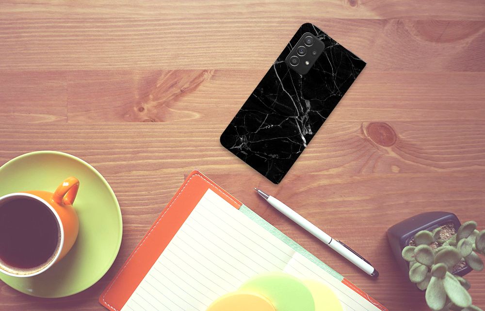 Dit design hoesje met Marmer Zwart is voor de artistieke personen onder ons. De Grieken en Romeinen wisten het materiaal al te waarderen door het in de bouw toe te passen. Naast het witte marmer met haar zacht grijze geaderde belijning zijn de diverse soorten in een gevarieerd kleurenpallet te krijgen. We hebben mooie kleuren op design hoesjes gezet, zoals in dit geval zwart marmer. Dit is een Samsung Galaxy A52 Standcase met marmer in zwarte kleur. Het marmer wordt bedrukt op alle zijden van een stand case, die beschikt over 1 vakje voor een pasje en een magnetische sluiting aan de binnenzijde. Verder heeft de hoes een houder van TPU. De rijkdom aan kleuren en varianties in afwerking geeft ontwerpers de vrijheid om met marmer hele mooie architectonische projecten te realiseren. Wij hebben onze ontwerper tevens veel vrijheid gegeven. Het resultaat zie je terug in deze stand case met zwart marmer, dat de ideale bescherming voor jouw smartphone biedt.