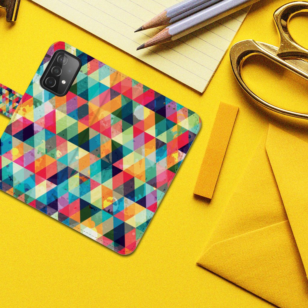 Dit design hoesje bestaat uit ruitjes in alle kleuren van de regenboog, wat inderdaad een beetje druk is, en waar je echt een liefhebber van moet zijn. Feit is dat dit hoesje zeker opvalt en als je daarvan houdt, is dit het perfecte Telefoon Hoesje voor jou! Daarnaast is dit Samsung Galaxy A52 hoesje een bookcase, wat inhoudt dat jouw telefoon aan alle zijdes beschermd is. En deze bookcase is ook nog eens aan alle kanten bedrukt, zodat het wel mooi blijft, zelfs het lipje van het hoesje is bedrukt met het ruitjes patroon. De buitenkant van dit designhoesje is gemaakt van PU-leer. De binnenkant daarentegen is gemaakt van TPU wat de telefoon goed beschermt in het geval dat hij op de grond zou vallen. Ook kun je jouw pasjes allemaal kwijt in dit hoesje zodat jij al jouw belangrijke bezittingen bij de hand hebt.