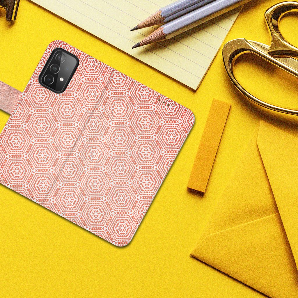 Dit Samsung Galaxy A52 Telefoon Hoesje met Pattern Orange vind je in geen enkel andere winkel of webshop. Heb je het eenmaal in je bezit, dan wil waarschijnlijk nooit meer een ander smartphone hoesje meer. Het design met oranje en wit patroon is bijzonder smaakvol en op maat gemaakt voor jouw smartphone. Dat is de kracht van het hoesje. Met dit design hoesje met oranje en wit patroon zal je ook heel erg opvallen. Dit is voor veel smartphone gebruikers een belangrijk voordeel. Dit zeer populaire smartphone hoesje met oranje patroon heeft verschillende vakjes en is aan alle zijden bedrukt. Zelfs het lipje aan de buitenkant heeft een print. Het oranje patroon staat op dit boekhoesje erg goed. De houder is van TPU, de buitenzijde van PU-leer.