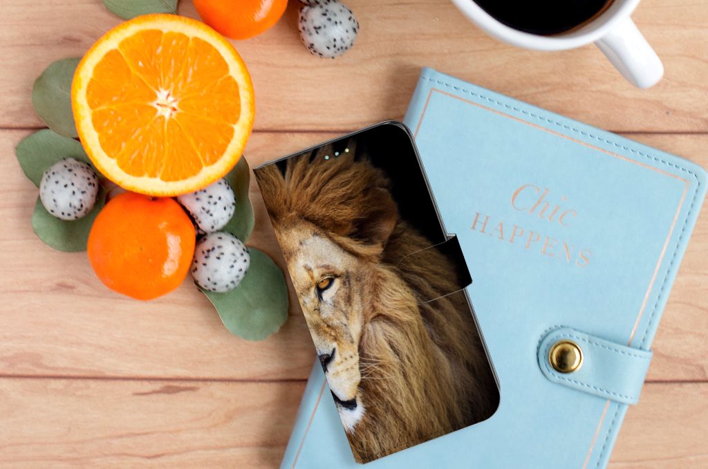 Samsung Galaxy A52 Telefoonhoesje met Pasjes en met magnetische sluitclip Leeuw