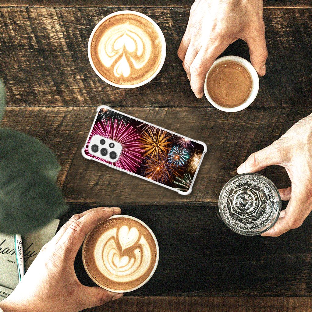 Ben je op zoek naar een uniek telefoonhoesje voor je Samsung Galaxy A53 5G? Dan ben je bij B2C Telecom aan het juiste adres! Speciaal voor jou hebben we dit prachtige Vuurwerk design in onze collectie hoesjes opgenomen. Het design wordt bedrukt op een Anti Shock Bumper Case en is gemaakt van flexibel rubber. Het hoesje is perfect voor de actieve smartphonegebruiker door de opstaande randen/hoeken. Denk aan mensen die veel sporten, reizen of wandelen en net iets meer zekerheid willen als het op hun geliefde telefoon aankomt. Het design wordt alleen aan de bovenkant van het hoesje bedrukt en de randen blijven transparant. Aan de zijkanten zijn uitsparingen gemaakt waardoor je met gemak alle knoppen en poorten kunt bedienen. Wij adviseren om dit hoesje in combinatie met een screenprotector te gebruiken voor een langere levensduur van je telefoon. Wil je dit hoesje nog iets extra's geven? Voeg dan gratis je naam of een quote toe! Is dit design hoesje toch niet helemaal wat je zocht? Ontwerp dan zelf een hoesje in ons ontwerpprogramma.