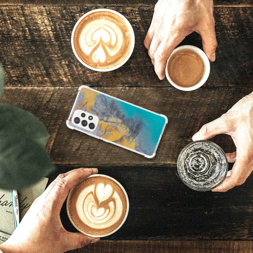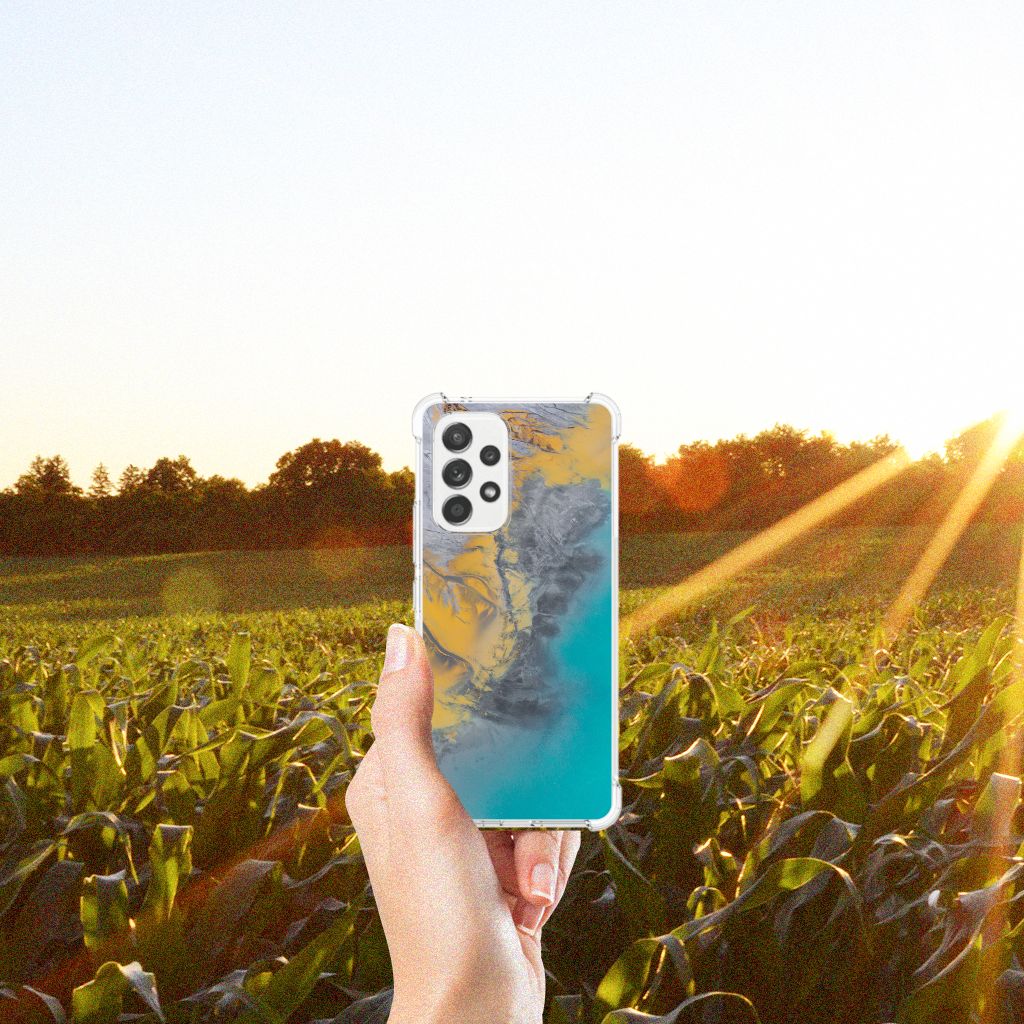 Ben je op zoek naar een uniek telefoonhoesje voor je Samsung Galaxy A53 5G? Dan ben je bij B2C Telecom aan het juiste adres! Speciaal voor jou hebben we dit prachtige Marble Blue Gold design in onze collectie hoesjes opgenomen. Het design wordt bedrukt op een Anti-Shock Hoesje en is gemaakt van flexibel rubber. Het hoesje is perfect voor de actieve smartphonegebruiker door de opstaande randen/hoeken. Denk aan mensen die veel sporten, reizen of wandelen en net iets meer zekerheid willen als het op hun geliefde telefoon aankomt. Het design wordt alleen aan de bovenkant van het hoesje bedrukt en de randen blijven transparant. Aan de zijkanten zijn uitsparingen gemaakt waardoor je met gemak alle knoppen en poorten kunt bedienen. Wij adviseren om dit hoesje in combinatie met een screenprotector te gebruiken voor een langere levensduur van je telefoon. Wil je dit hoesje nog iets extra's geven? Voeg dan gratis je naam of een quote toe! Is dit design hoesje toch niet helemaal wat je zocht? Ontwerp dan zelf een hoesje in ons ontwerpprogramma.
