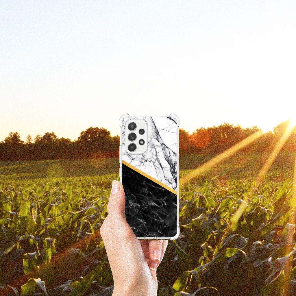 Ben je op zoek naar een uniek telefoonhoesje voor je Samsung Galaxy A53 5G? Dan ben je bij B2C Telecom aan het juiste adres! Speciaal voor jou hebben we dit prachtige Marble White Black design in onze collectie hoesjes opgenomen. Het design wordt bedrukt op een Anti-Shock Hoesje en is gemaakt van flexibel rubber. Het hoesje is perfect voor de actieve smartphonegebruiker door de opstaande randen/hoeken. Denk aan mensen die veel sporten, reizen of wandelen en net iets meer zekerheid willen als het op hun geliefde telefoon aankomt. Het design wordt alleen aan de bovenkant van het hoesje bedrukt en de randen blijven transparant. Aan de zijkanten zijn uitsparingen gemaakt waardoor je met gemak alle knoppen en poorten kunt bedienen. Wij adviseren om dit hoesje in combinatie met een screenprotector te gebruiken voor een langere levensduur van je telefoon. Wil je dit hoesje nog iets extra's geven? Voeg dan gratis je naam of een quote toe! Is dit design hoesje toch niet helemaal wat je zocht? Ontwerp dan zelf een hoesje in ons ontwerpprogramma.