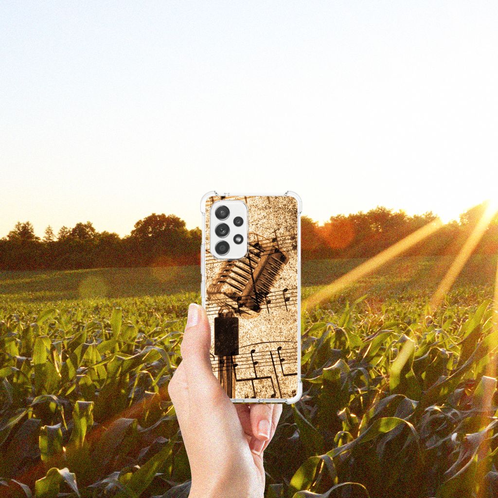 Ben je op zoek naar een uniek telefoonhoesje voor je Samsung Galaxy A53 5G? Dan ben je bij B2C Telecom aan het juiste adres! Speciaal voor jou hebben we dit prachtige Bladmuziek design in onze collectie hoesjes opgenomen. Het design wordt bedrukt op een Anti-shock Hoesje met foto en is gemaakt van flexibel rubber. Het hoesje is perfect voor de actieve smartphonegebruiker door de opstaande randen/hoeken. Denk aan mensen die veel sporten, reizen of wandelen en net iets meer zekerheid willen als het op hun geliefde telefoon aankomt. Het design wordt alleen aan de bovenkant van het hoesje bedrukt en de randen blijven transparant. Aan de zijkanten zijn uitsparingen gemaakt waardoor je met gemak alle knoppen en poorten kunt bedienen. Wij adviseren om dit hoesje in combinatie met een screenprotector te gebruiken voor een langere levensduur van je telefoon. Wil je dit hoesje nog iets extra's geven? Voeg dan gratis je naam of een quote toe! Is dit design hoesje toch niet helemaal wat je zocht? Ontwerp dan zelf een hoesje in ons ontwerpprogramma.