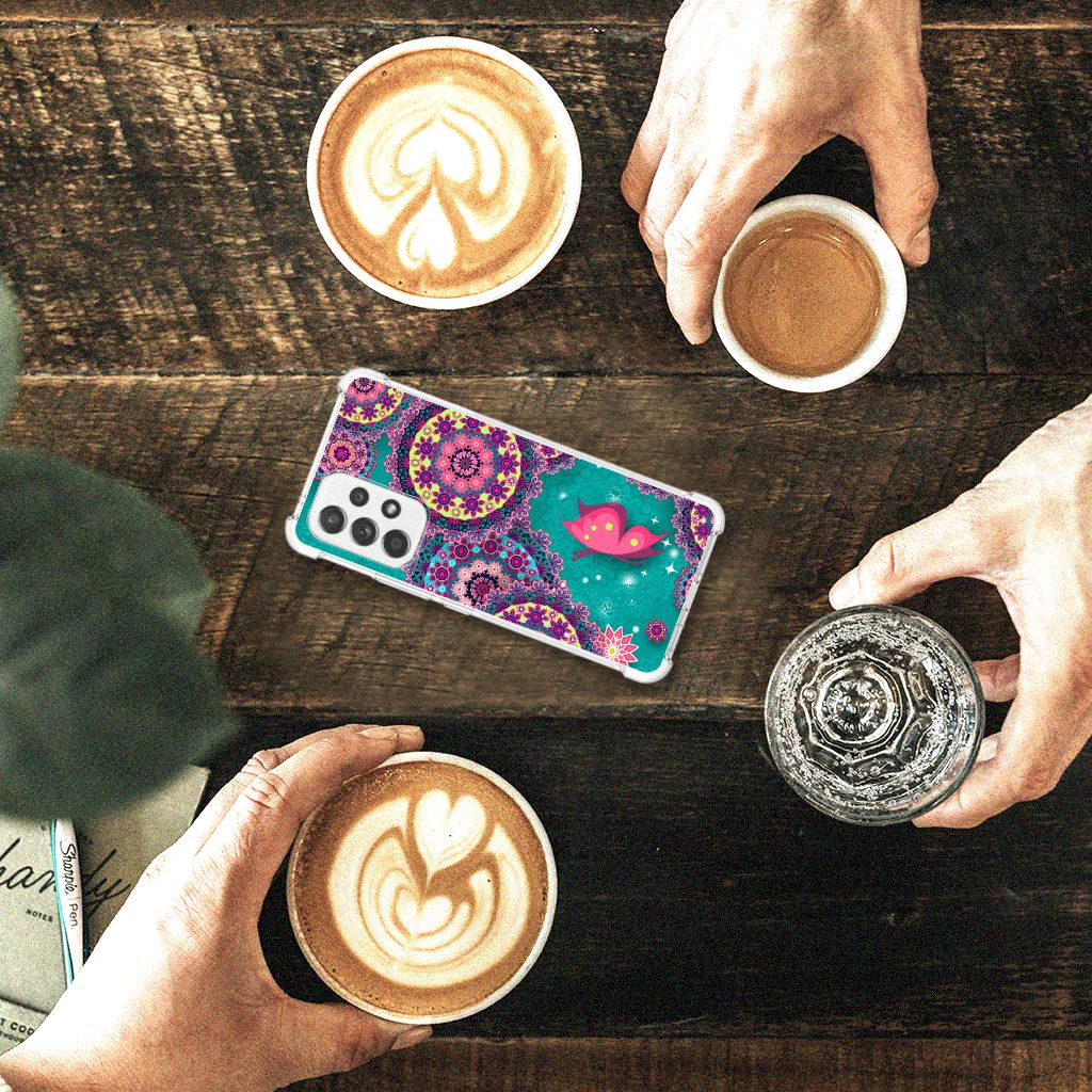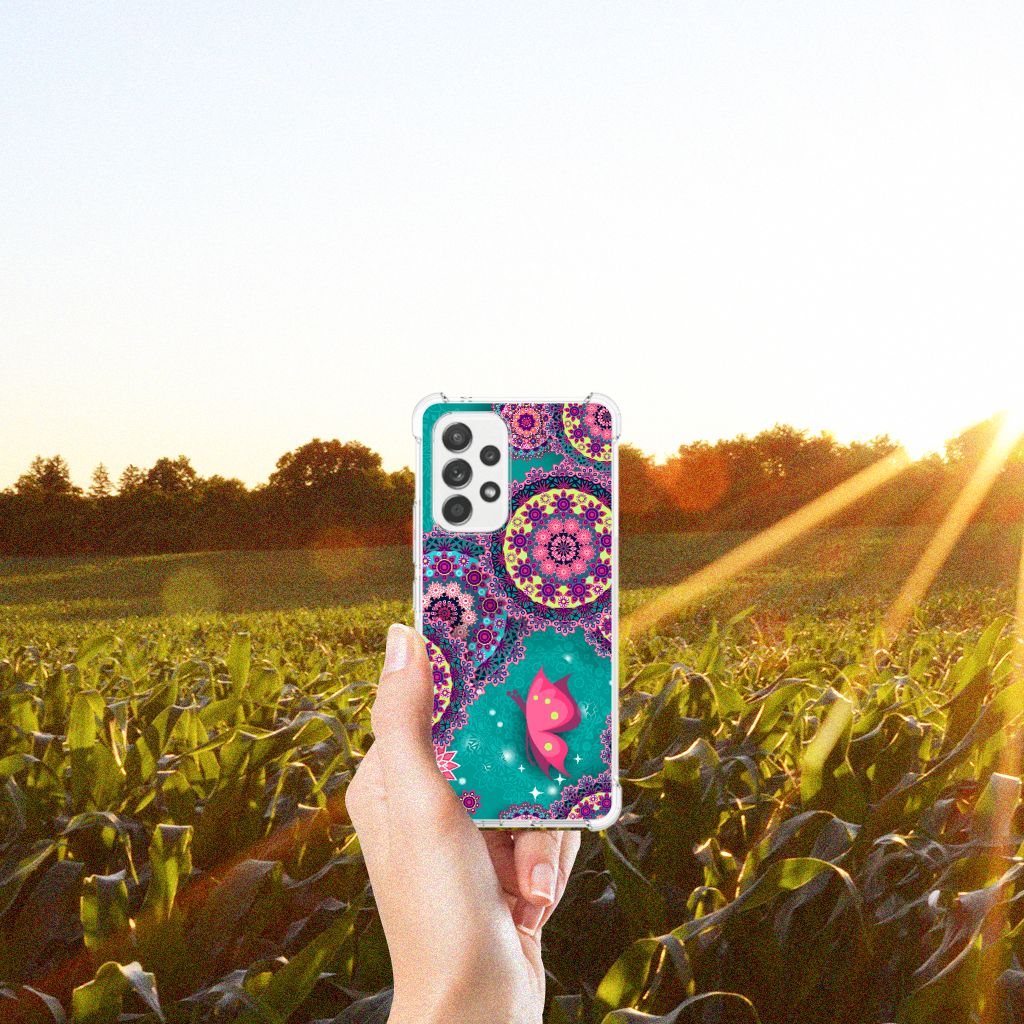 Ben je op zoek naar een uniek telefoonhoesje voor je Samsung Galaxy A53 5G? Dan ben je bij B2C Telecom aan het juiste adres! Speciaal voor jou hebben we dit prachtige Cirkels en Vlinders design in onze collectie hoesjes opgenomen. Het design wordt bedrukt op een Back Cover en is gemaakt van flexibel rubber. Het hoesje is perfect voor de actieve smartphonegebruiker door de opstaande randen/hoeken. Denk aan mensen die veel sporten, reizen of wandelen en net iets meer zekerheid willen als het op hun geliefde telefoon aankomt. Het design wordt alleen aan de bovenkant van het hoesje bedrukt en de randen blijven transparant. Aan de zijkanten zijn uitsparingen gemaakt waardoor je met gemak alle knoppen en poorten kunt bedienen. Wij adviseren om dit hoesje in combinatie met een screenprotector te gebruiken voor een langere levensduur van je telefoon. Wil je dit hoesje nog iets extra's geven? Voeg dan gratis je naam of een quote toe! Is dit design hoesje toch niet helemaal wat je zocht? Ontwerp dan zelf een hoesje in ons ontwerpprogramma.