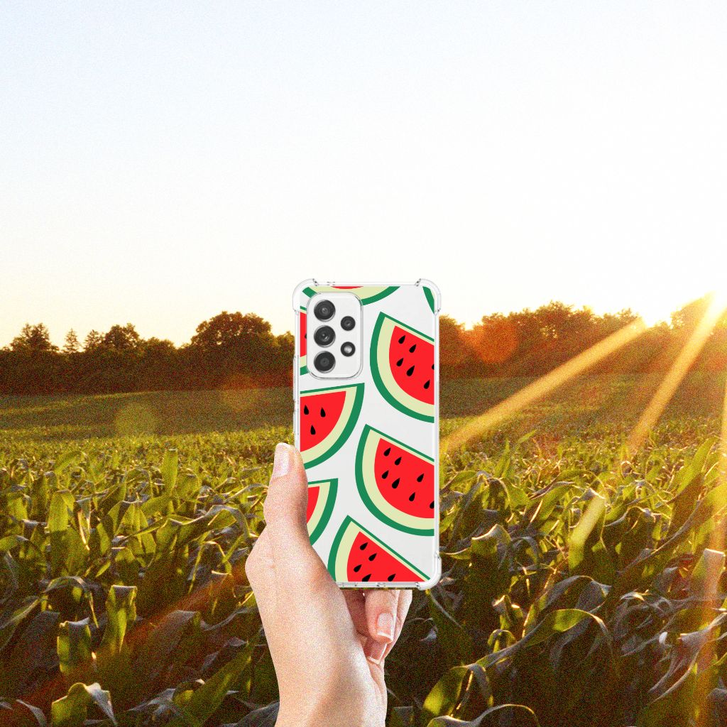 Ben je op zoek naar een uniek telefoonhoesje voor je Samsung Galaxy A53 5G? Dan ben je bij B2C Telecom aan het juiste adres! Speciaal voor jou hebben we dit prachtige Watermelons design in onze collectie hoesjes opgenomen. Het design wordt bedrukt op een Beschermhoes en is gemaakt van flexibel rubber. Het hoesje is perfect voor de actieve smartphonegebruiker door de opstaande randen/hoeken. Denk aan mensen die veel sporten, reizen of wandelen en net iets meer zekerheid willen als het op hun geliefde telefoon aankomt. Het design wordt alleen aan de bovenkant van het hoesje bedrukt en de randen blijven transparant. Aan de zijkanten zijn uitsparingen gemaakt waardoor je met gemak alle knoppen en poorten kunt bedienen. Wij adviseren om dit hoesje in combinatie met een screenprotector te gebruiken voor een langere levensduur van je telefoon. Wil je dit hoesje nog iets extra's geven? Voeg dan gratis je naam of een quote toe! Is dit design hoesje toch niet helemaal wat je zocht? Ontwerp dan zelf een hoesje in ons ontwerpprogramma.
