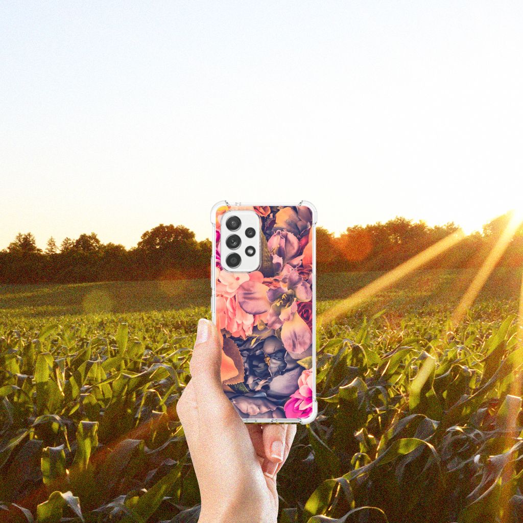 Ben je op zoek naar een uniek telefoonhoesje voor je Samsung Galaxy A53 5G? Dan ben je bij B2C Telecom aan het juiste adres! Speciaal voor jou hebben we dit prachtige Bosje Bloemen design in onze collectie hoesjes opgenomen. Het design wordt bedrukt op een Case en is gemaakt van flexibel rubber. Het hoesje is perfect voor de actieve smartphonegebruiker door de opstaande randen/hoeken. Denk aan mensen die veel sporten, reizen of wandelen en net iets meer zekerheid willen als het op hun geliefde telefoon aankomt. Het design wordt alleen aan de bovenkant van het hoesje bedrukt en de randen blijven transparant. Aan de zijkanten zijn uitsparingen gemaakt waardoor je met gemak alle knoppen en poorten kunt bedienen. Wij adviseren om dit hoesje in combinatie met een screenprotector te gebruiken voor een langere levensduur van je telefoon. Wil je dit hoesje nog iets extra's geven? Voeg dan gratis je naam of een quote toe! Is dit design hoesje toch niet helemaal wat je zocht? Ontwerp dan zelf een hoesje in ons ontwerpprogramma.