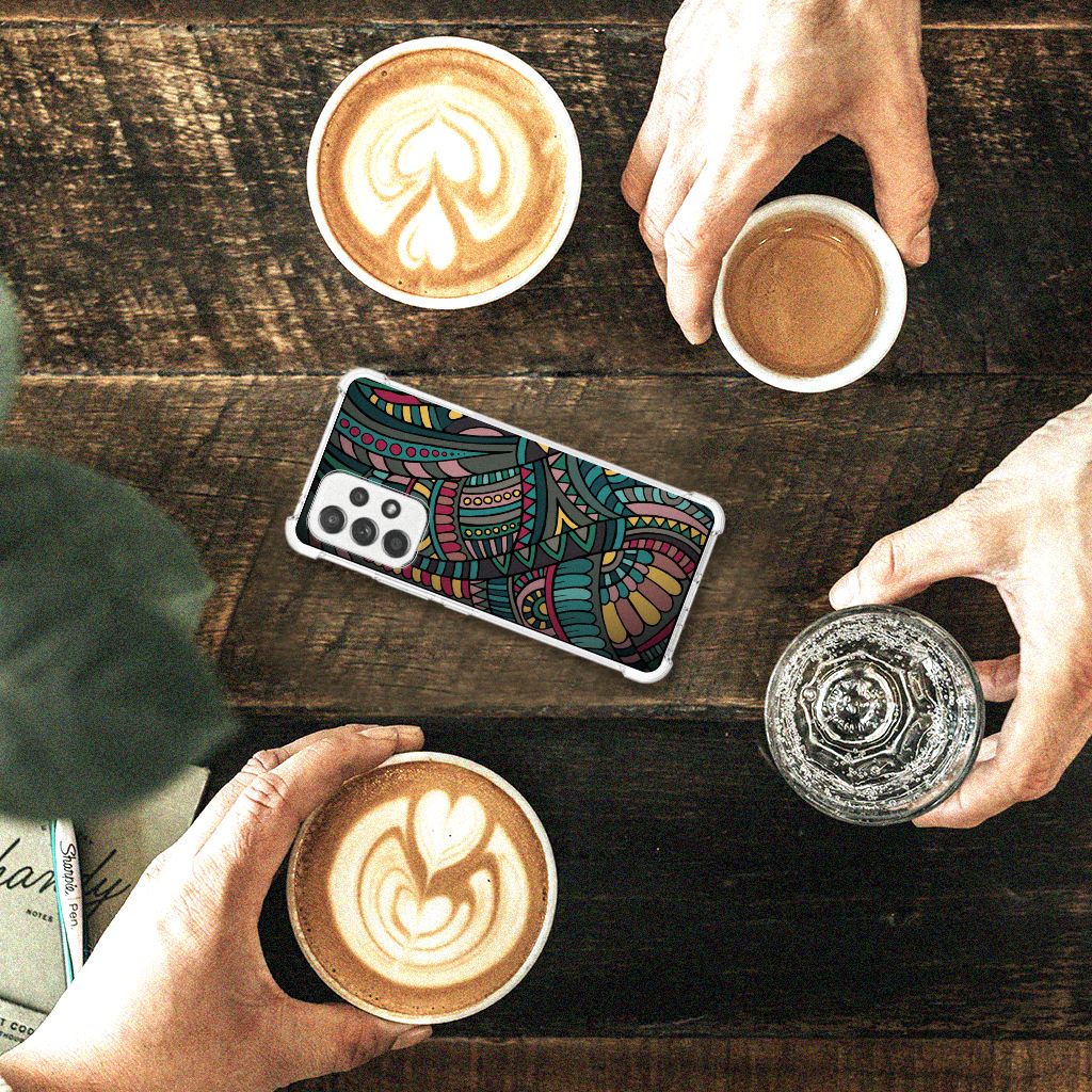 Ben je op zoek naar een uniek telefoonhoesje voor je Samsung Galaxy A53 5G? Dan ben je bij B2C Telecom aan het juiste adres! Speciaal voor jou hebben we dit prachtige Aztec design in onze collectie hoesjes opgenomen. Het design wordt bedrukt op een Doorzichtige Silicone Hoesje en is gemaakt van flexibel rubber. Het hoesje is perfect voor de actieve smartphonegebruiker door de opstaande randen/hoeken. Denk aan mensen die veel sporten, reizen of wandelen en net iets meer zekerheid willen als het op hun geliefde telefoon aankomt. Het design wordt alleen aan de bovenkant van het hoesje bedrukt en de randen blijven transparant. Aan de zijkanten zijn uitsparingen gemaakt waardoor je met gemak alle knoppen en poorten kunt bedienen. Wij adviseren om dit hoesje in combinatie met een screenprotector te gebruiken voor een langere levensduur van je telefoon. Wil je dit hoesje nog iets extra's geven? Voeg dan gratis je naam of een quote toe! Is dit design hoesje toch niet helemaal wat je zocht? Ontwerp dan zelf een hoesje in ons ontwerpprogramma.