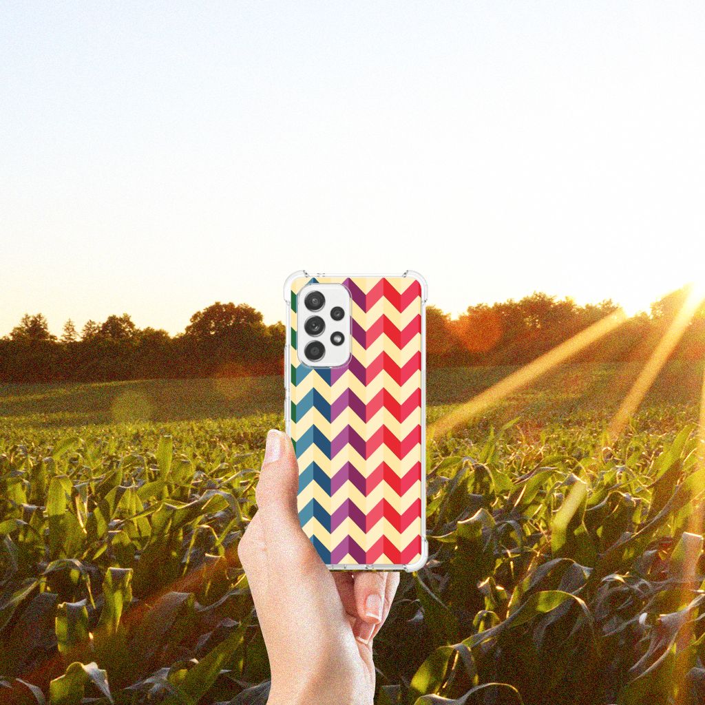 Ben je op zoek naar een uniek telefoonhoesje voor je Samsung Galaxy A53 5G? Dan ben je bij B2C Telecom aan het juiste adres! Speciaal voor jou hebben we dit prachtige Zigzag Color design in onze collectie hoesjes opgenomen. Het design wordt bedrukt op een Doorzichtige Silicone Hoesje en is gemaakt van flexibel rubber. Het hoesje is perfect voor de actieve smartphonegebruiker door de opstaande randen/hoeken. Denk aan mensen die veel sporten, reizen of wandelen en net iets meer zekerheid willen als het op hun geliefde telefoon aankomt. Het design wordt alleen aan de bovenkant van het hoesje bedrukt en de randen blijven transparant. Aan de zijkanten zijn uitsparingen gemaakt waardoor je met gemak alle knoppen en poorten kunt bedienen. Wij adviseren om dit hoesje in combinatie met een screenprotector te gebruiken voor een langere levensduur van je telefoon. Wil je dit hoesje nog iets extra's geven? Voeg dan gratis je naam of een quote toe! Is dit design hoesje toch niet helemaal wat je zocht? Ontwerp dan zelf een hoesje in ons ontwerpprogramma.