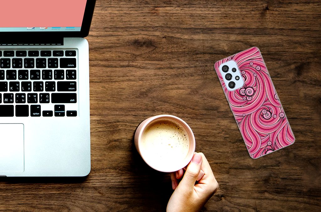 Deze mooie Samsung Galaxy A53 5G Hoesje maken met Swirl Pink is een geweldige en duurzame bescherming voor jouw smartphone. De kleuren zijn zeer subtiel op het hoesje gezet en worden op de bovenkant van de case bedrukt. Dit drukwerk doen we in eigen beheer, zodat het roze en het zwart ook uitstekend tot zijn recht komen op de tpu case. Een tpu hoesje is perfect op maat gemaakt en heeft een mooie uitstraling. Daarnaast is de case zeer flexibel en het materiaal is onbreekbaar. De case heeft opstaande randen ter bescherming van het scherm. De randen van het tpu hoesje worden niet in roze met zwart bedrukt. Nergens tref je een hoesje met deze kleuren aan dat zo goed past bij jouw smartphone.