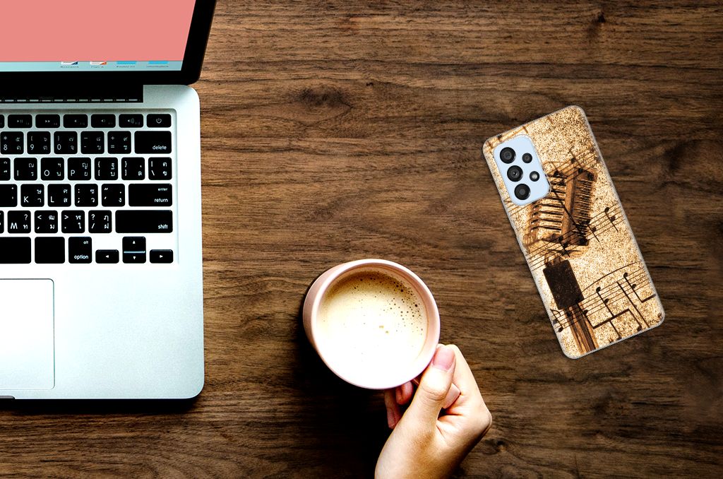 Ben je muzikant, dan is dit design hoesje met Bladmuziek wellicht echt iets voor jou. Met de intrede van nieuwe media wordt de rol van papieren bladmuziek teruggedrongen. Steeds vaker treft men 'bladmuziek' op een beeldschermapparaat, zoals een tablet-pc, e-reader of iPad aan. Gelukkig maar, want als er geen nieuwe media zouden zijn, hadden wij ook nooit onze Phone Case Designer kunnen ontwerpen. Met deze unieke ontwerpmodule kun je jouw favoriete band of artiest op je smartphone hoesje zetten, maar je kunt ook gaan voor dit prachtige design hoesje met print van bladmuziek. Het design staat op een Samsung Galaxy A53 5G Siliconen Hoesje met foto. Deze case beschermt jouw telefoon vooral aan de achterzijde en zijkanten en is zeer flexibel. Het hoesje blijft aan de zijkanten transparant, de bovenkant is geheel bedrukt. TPU is onbreekbaar materiaal, dat zeer schokabsorberend is. Het hoesje past altijd in je broekzak en combineert uitstekend met een screenprotector.