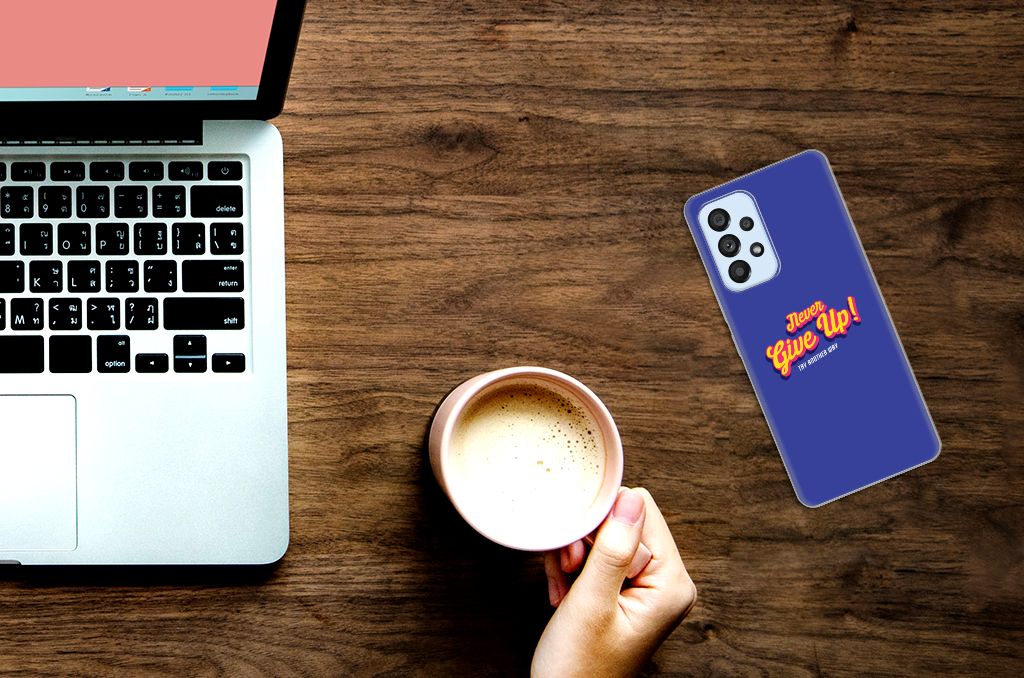 Ben je op zoek naar een uniek telefoonhoesje voor je Samsung Galaxy A53 5G? Dan ben je bij B2C Telecom aan het juiste adres! Speciaal voor jou hebben we dit prachtige Never Give Up design in onze collectie hoesjes opgenomen. Het design wordt bedrukt op een Siliconen hoesje met naam en is gemaakt van flexibel rubber. Het design wordt alleen aan de bovenkant van het hoesje bedrukt en de randen blijven transparant. Aan de zijkanten zijn uitsparingen gemaakt waardoor je met gemak alle knoppen en poorten kunt bedienen. Wij adviseren om dit hoesje in combinatie met een screenprotector te gebruiken voor een langere levensduur van je telefoon. Wil je dit design hoesje nog iets extra's geven? Voeg dan gratis je naam of een quote toe! Is dit design hoesje toch niet helemaal wat je zocht? Ontwerp dan zelf een hoesje in ons ontwerpprogramma.