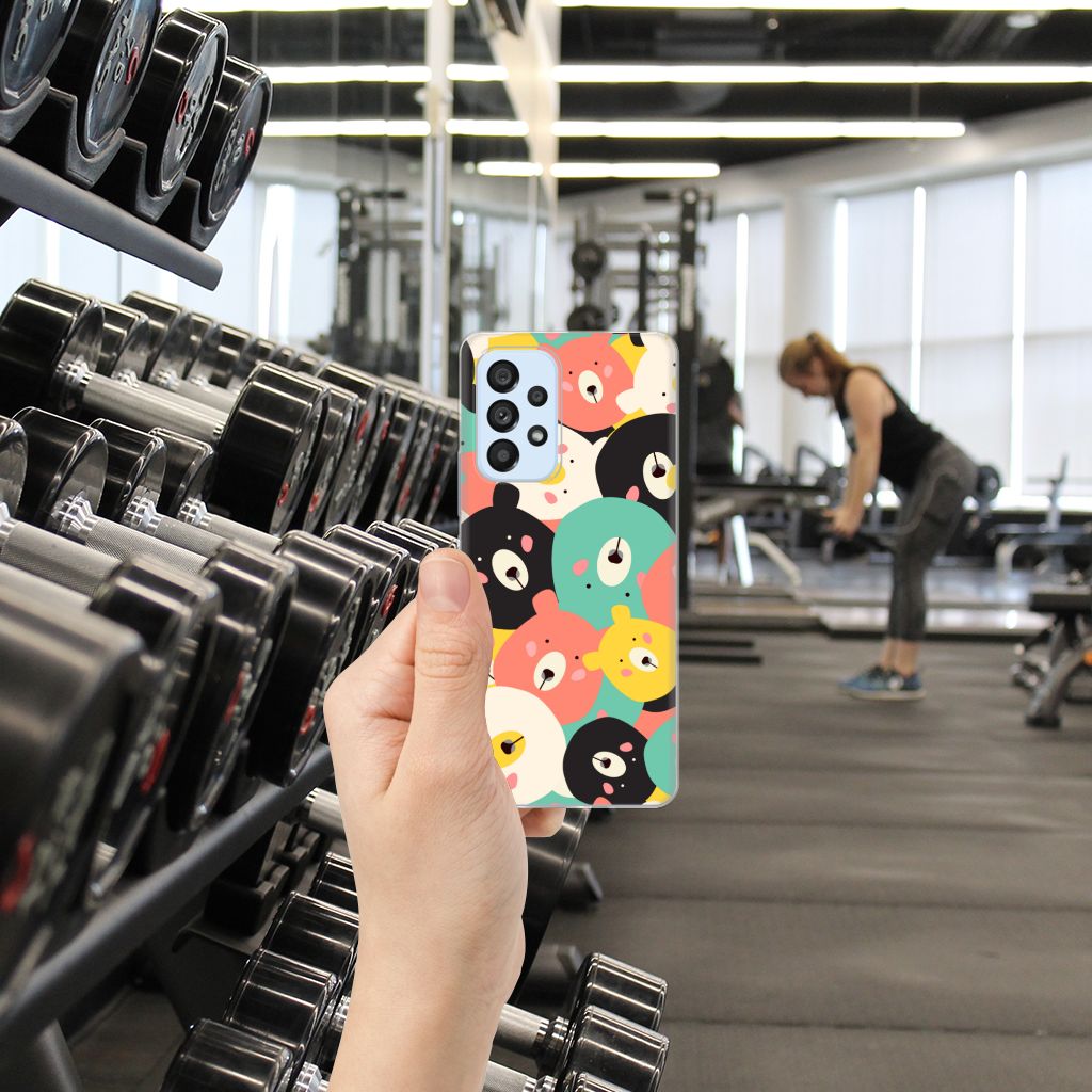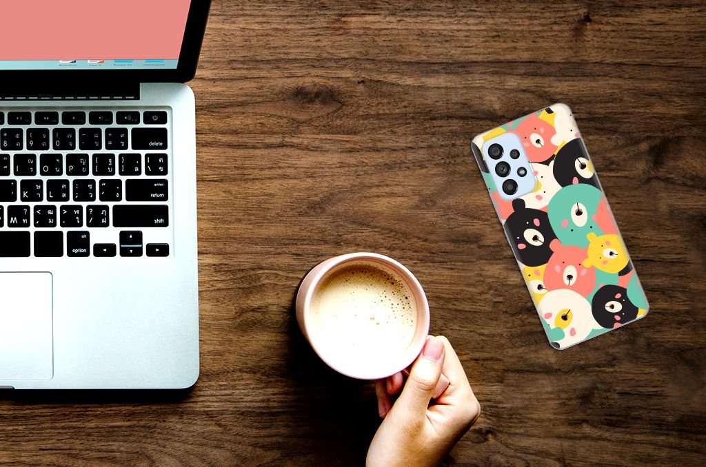 Op dit hoesje vind je een bereschattig ontwerp! Vergeef ons de woordgrap, maar hoe moeten we dit lieve ontwerp anders omschrijven? Op dit knuffelige ontwerp zie je leuke, getekende beertjes in vrolijke kleuren als geel, blauw en roze. Dankzij de contrasterende witte en zwarte beertjes vallen de felle kleurtjes nog meer op. Al met al is dit Telefoonhoesje met Naam voor de Samsung Galaxy A53 5G een perfect hoesje voor de knuffelberen onder ons. TPU is flexibel en onbreekbaar. Zo is je telefoon aan de achterkant en de randen heel goed beschermd. De case met het Bears-design is aan de bovenkant bedrukt, de randen blijven transparant. Het TPU-hoesje is perfect te combineren met een screenprotector, zo zijn je telefoon en je beeldscherm perfect beschermd.