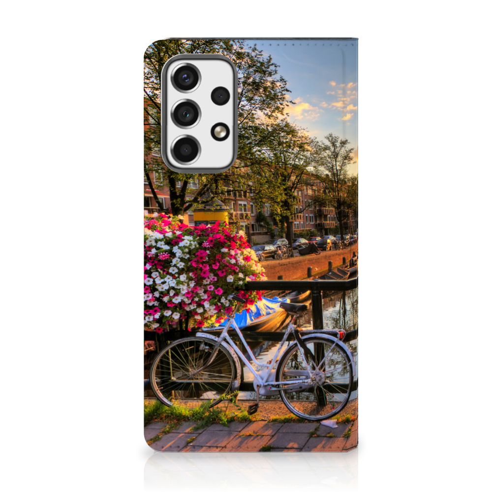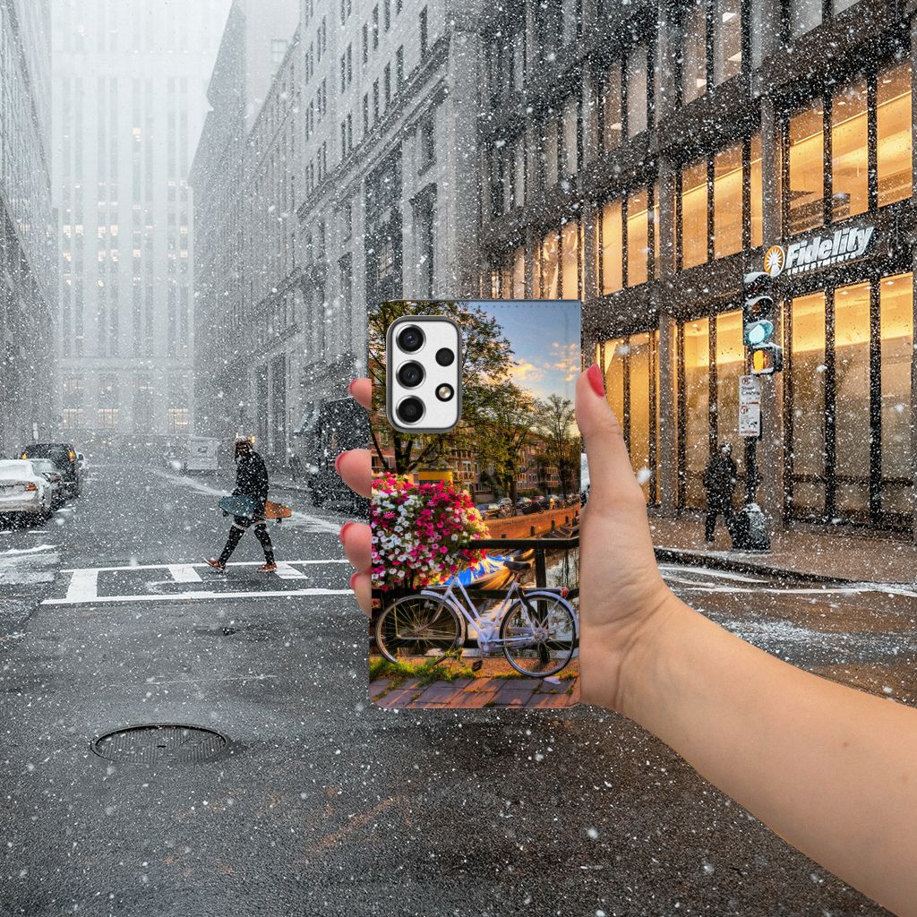Amsterdam is meer dan ooit een toeristische trekpleister. Een bezoek aan de hoofdstad is niet compleet als er geen bezoek is gebracht aan de Amsterdamse Grachten. Ze zijn een symbool van de stad en hebben een enorme culturele en historische waarde. Daarom kunnen ze natuurlijk niet ontbreken in onze collectie design hoesjes. Dit schitterende design hoesje met Amsterdamse grachten tref je enkel en alleen aan bij B2C Telecom. De ondergaande zon en de fleurige en fraaie bloempakketten zorgen voor een prachtig totaalplaatje. Amsterdam is wereldberoemd om haar prachtige grachten uit de zeventiende eeuw. Dit smartphone hoesje is hier een eerbetoon aan. Het design staat op een stand case. Deze Samsung Galaxy A53 Book Cover beschermt jouw telefoon aan alle kanten en beschikt over een 1 opbergvakje en een speciale standaard. Het hoesje wordt afgesloten met een magneet aan de binnenzijde. De houder aan de binnenzijde is van TPU. Alle zijden van de stand case worden bedrukt.
