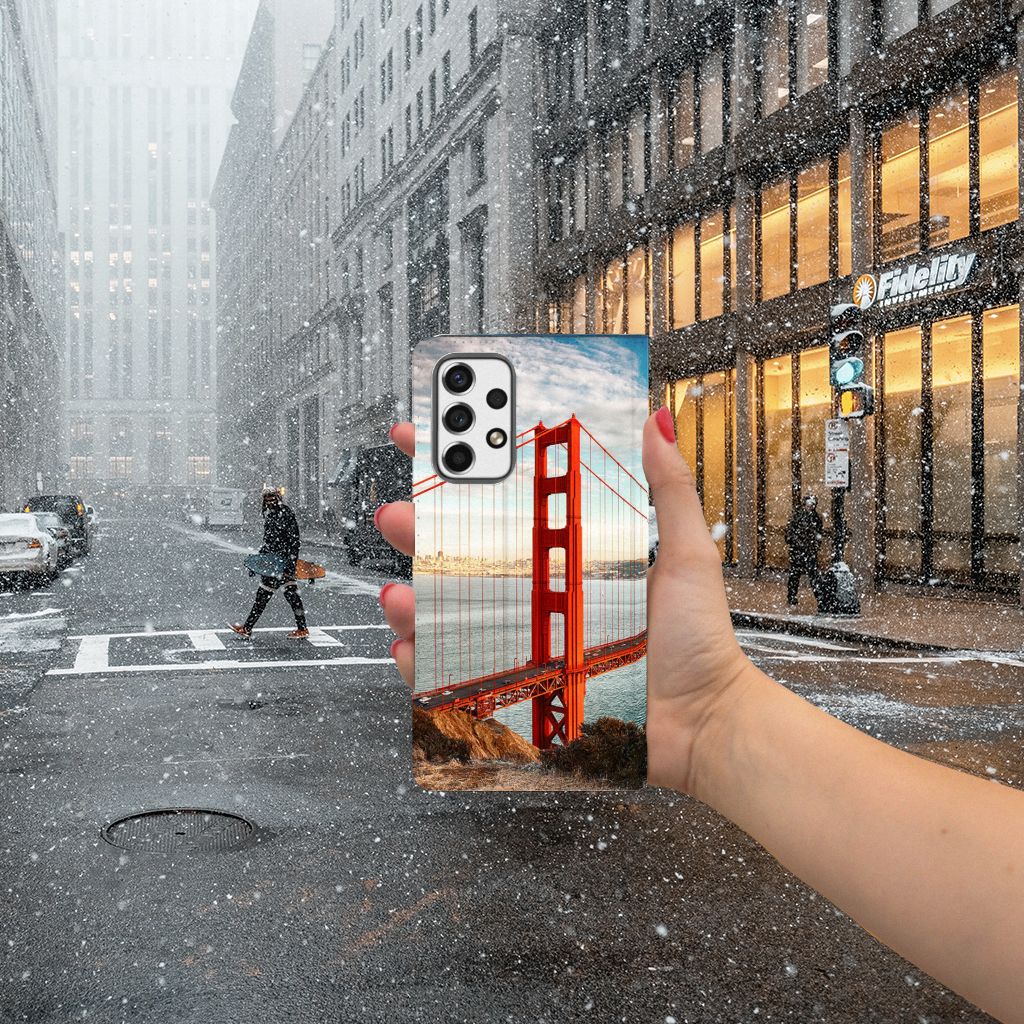 De Golden Gate Bridge is een technisch meesterwerk. Een van de langste en hoogste hangbruggen ter wereld is een schitterend staaltje van ingenieurskunst en een prachtig monument, dat met de rode kleur fel afsteekt tegen de omgeving. Dit monument komt op een fraaie manier tot uitdrukking op deze Samsung Galaxy A53 Book Cover. Het telefoonhoesje met design heeft 1 opbergvakje, waarin je een pasje of briefgeld kunt stoppen. Jouw telefoon past precies in de houder van TPU en de case wordt aan de binnenzijde magnetisch afgesloten. De Golden Gate Bridge is vanuit vele plekken in en rond San Francisco op een spectaculaire manier zichtbaar. Alle kanten van het telefoonhoesje worden bedrukt met foto’s van dit monument. Jouw telefoon is aan alle kanten goed beschermd met dit design hoesje met Golden Bridge print.