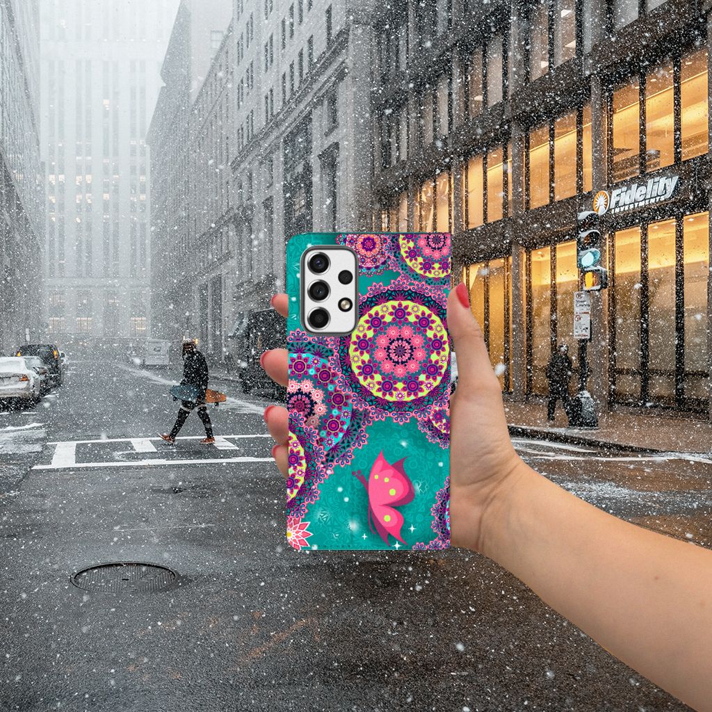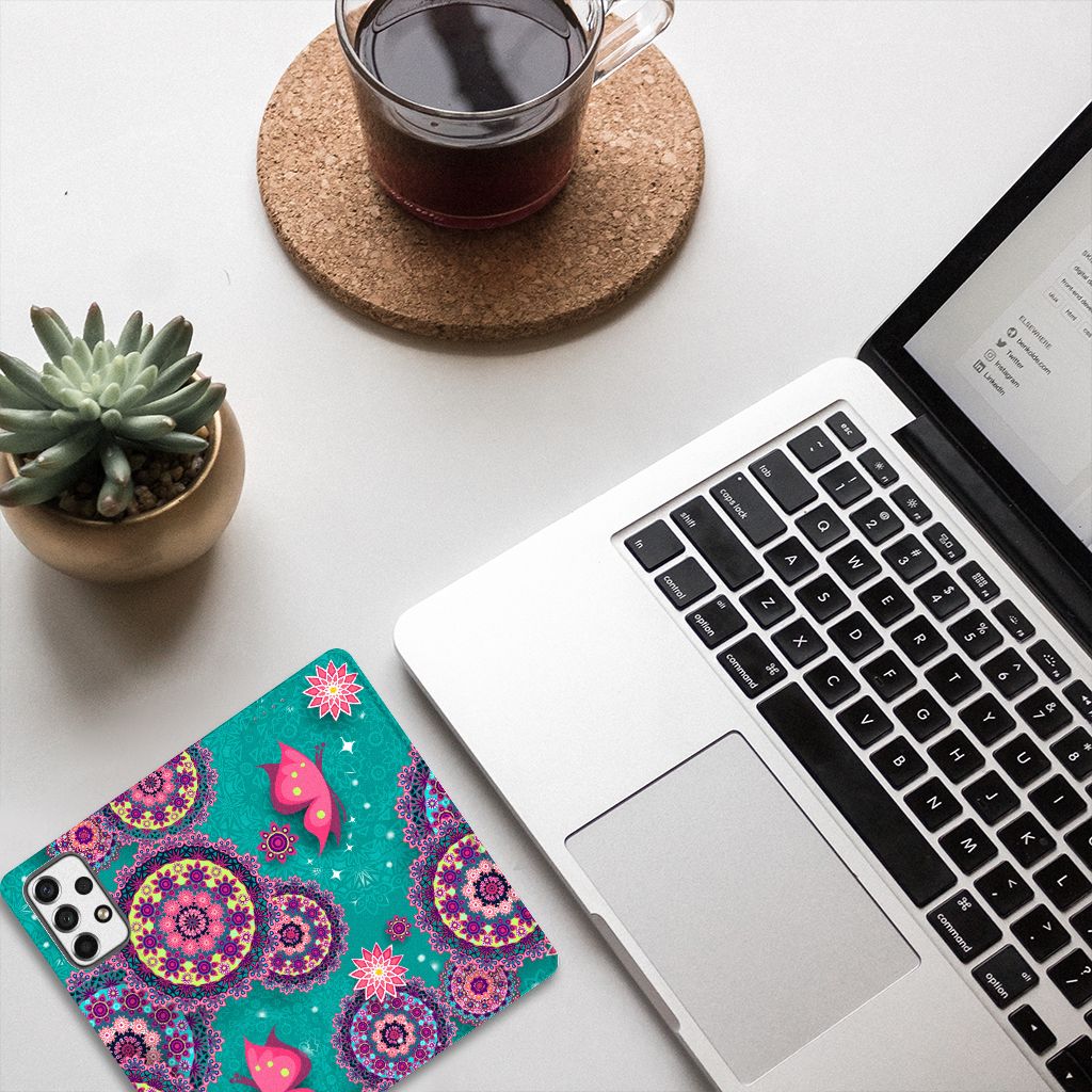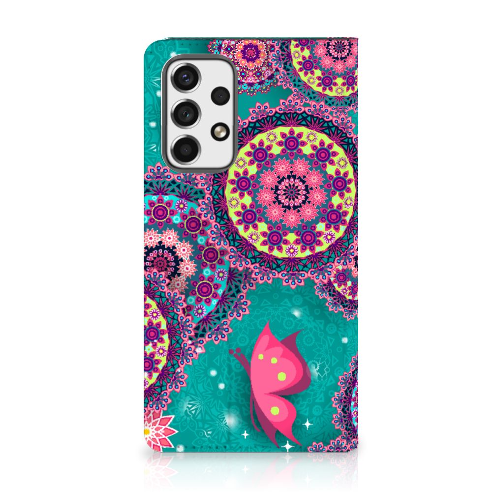 Deze opvallende Samsung Galaxy A53 Bookcase met Cirkels en Vlinders is een ware eyecatcher. De meeste vlinders hebben een onopvallende vleugelkleur en dat kun je van de soort op dit hoesje ook zeker wel zeggen. Wij kunnen deze opvallende vlinders en cirkels op een zeer handige stand case zetten. Deze hoesjes zijn zeer gewild. Met onze geavanceerde printer zetten we de print van opvallende vlinders en cirkels op alle zijden van het hoesje. De case met vlinders heeft aan de binnenkant een houder waarin je jouw creditcard of ander pasje kwijt kunt. De case heeft bovendien een handige standaard. Verder is je telefoon natuurlijk maximaal beschermd met deze stand case met print van opvallende en kleurrijke vlinders. De houder aan de binnenzijde van het design hoesje met opvallende vlinder print is van TPU.