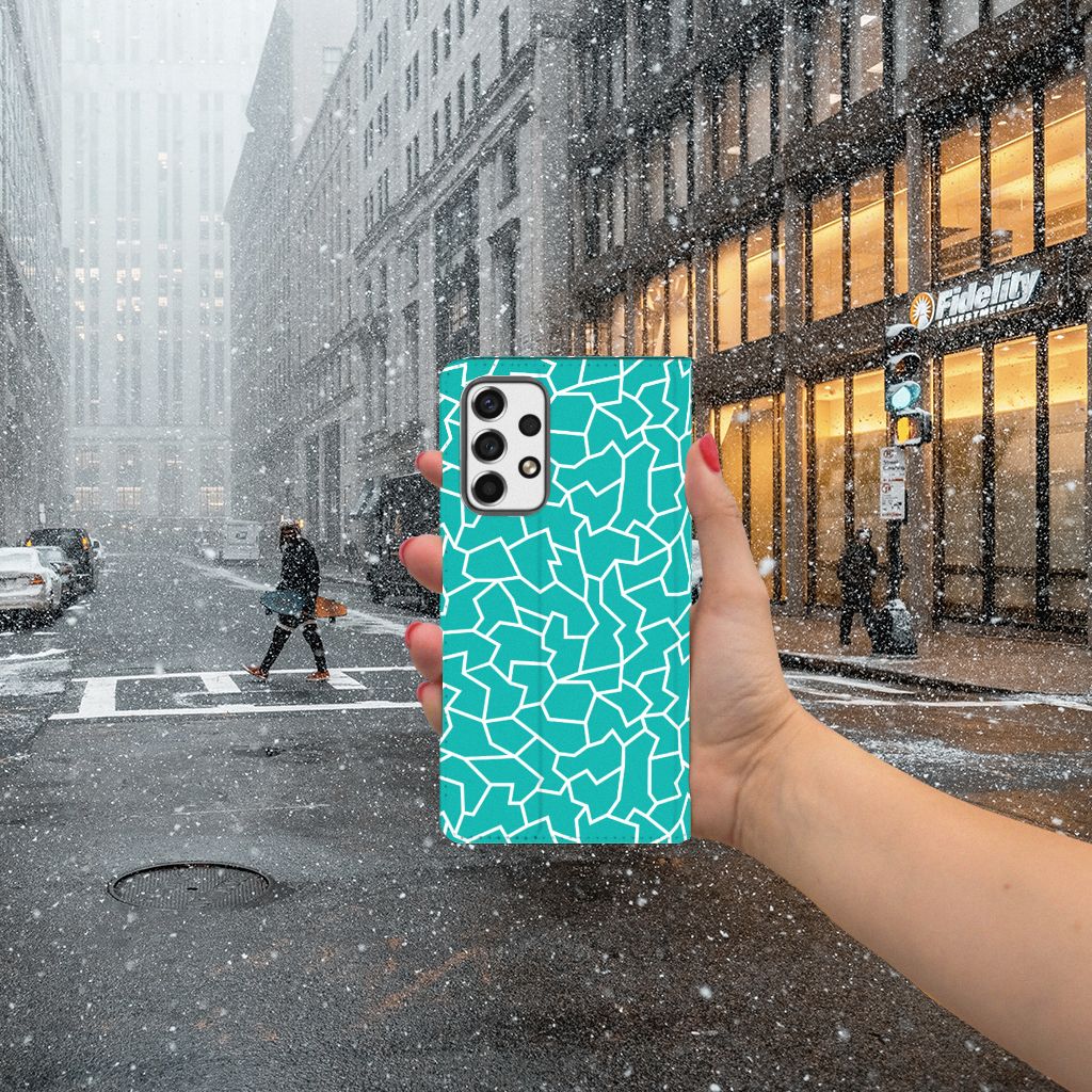 Dit mooie design hoesje toont witte barsten en voorkomt niet alleen barsten in het scherm van jouw smartphone. De Samsung Galaxy A53 Bookcase met een blauwe achtergrond staat ook garant voor een smartphone met een schadeloos en smetteloos design. De stand case met Cracks Blue achtergrond is de perfecte bescherming voor je telefoon. Jouw apparaat wordt aan alle zijden maximaal beschermd. Alle zijden van dit hoesje met witte barsten en blauwe achtergrond worden bedrukt. De blauwe case heeft een standaard waardoor je prettig filmpjes kunt kijken. De houder aan de binnenzijde is van het zeer flexibele TPU. Onder alle omstandigheden zal deze case met opbergvakje perfect functioneren. Het design met witte barsten en blauwe achtergrond wordt met een speciaal soort inkt op jouw hoesje bedrukt. Voor de mooiste en opvallendste stand cases zit je goed op deze website. Bestel ze snel, voor je weet gaat iemand anders er mee aan de haal!
