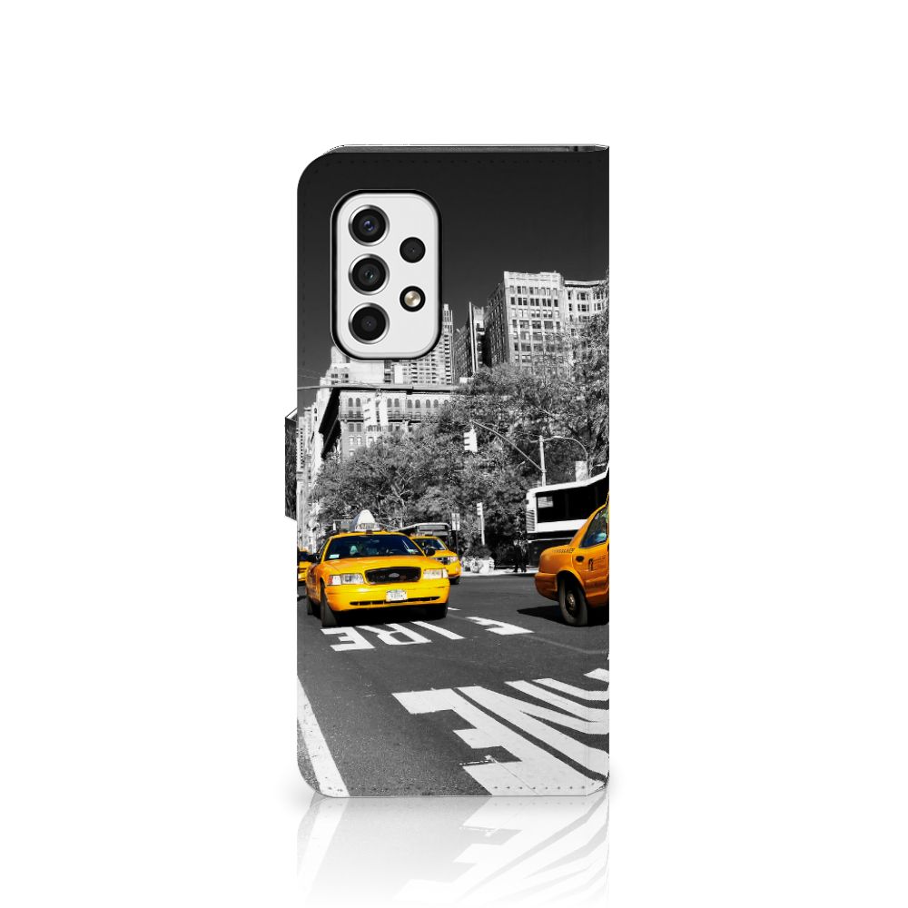 Voor de liefhebbers hebben we een design hoesje met print van New York. Om van plek A naar B te komen, nemen de meeste mensen een taxi. Omdat de taxi symbolisch is voor New York, hebben we deze ook op dit boekhoesje gezet. Een Samsung Galaxy A53 Flip Cover is ook zeer handig. Vanwege onder meer de opbergvakjes aan de binnenzijde, maar ook door het praktische lipje aan de buitenzijde. Dit is een magnetische sluiting, die bij een stand case aan de binnenzijde zit. Een taxi nemen, is de makkelijkste manier om van de ene plek naar de andere plek in de stad New York te raken. Zorg ervoor, als je deze stad bezoekt, dat je telefoon goed is beschermd met dit boekhoesje. Een boekhoesje wordt aan alle zijden bedrukt en de houder aan de binnenkant is van TPU.
